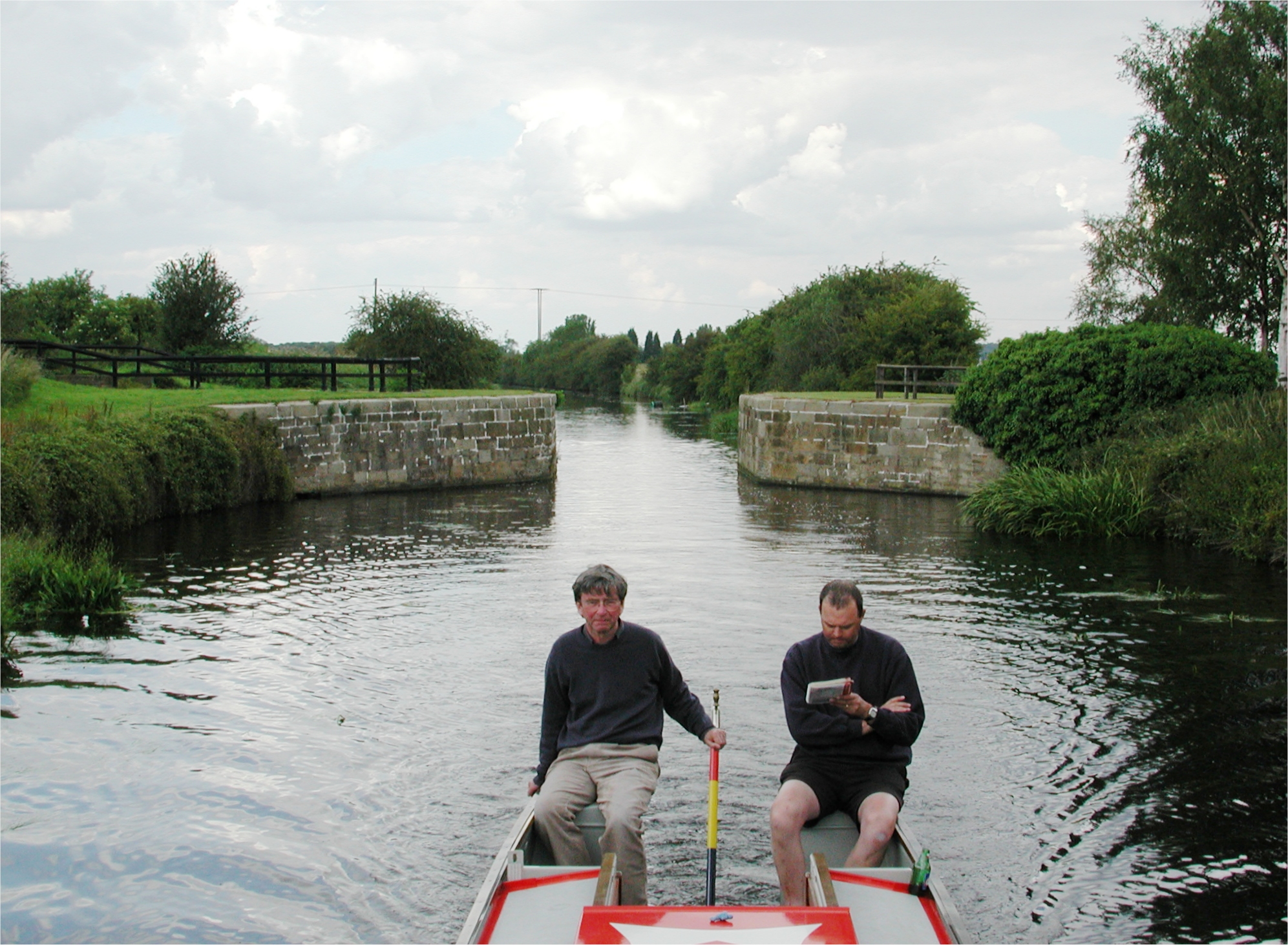 Frogmoore's neat arrival in Selby Lock. Chris is already out and tending to the
