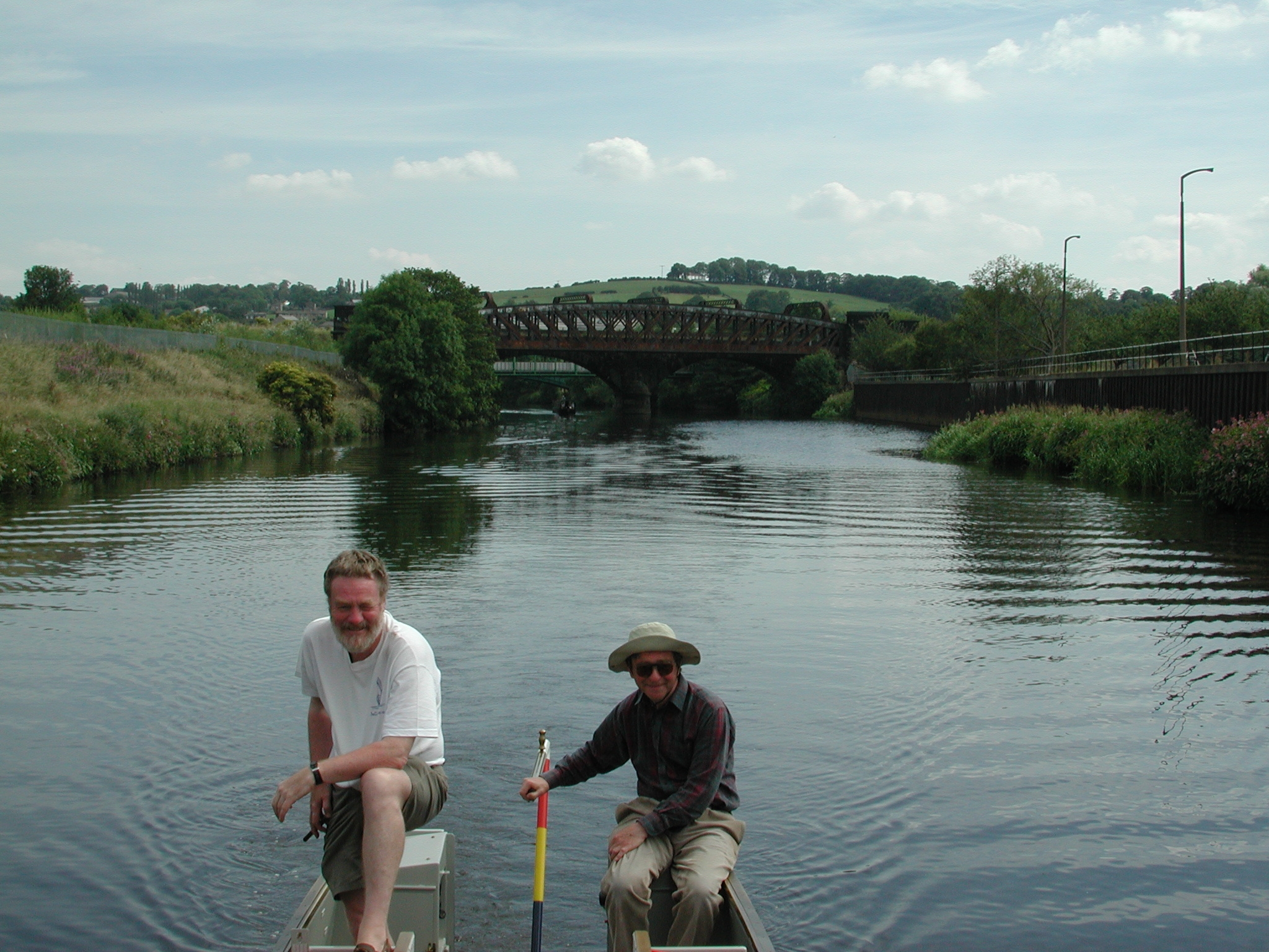 Looking back down the River Calder from Cooper Bridge. Roger Hare and Peter