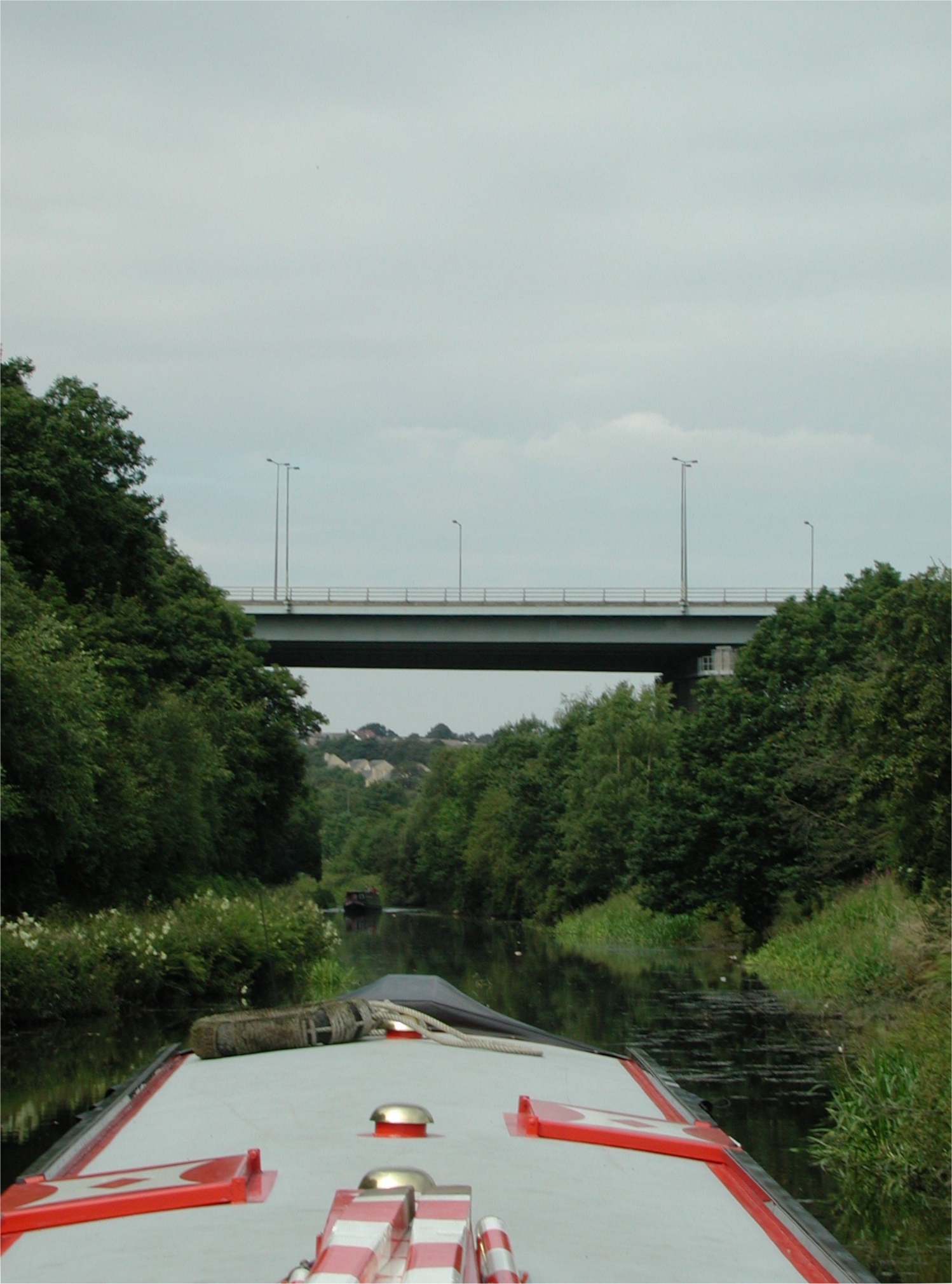 The M1 roars overhead. Calder and Hebble Navigation.