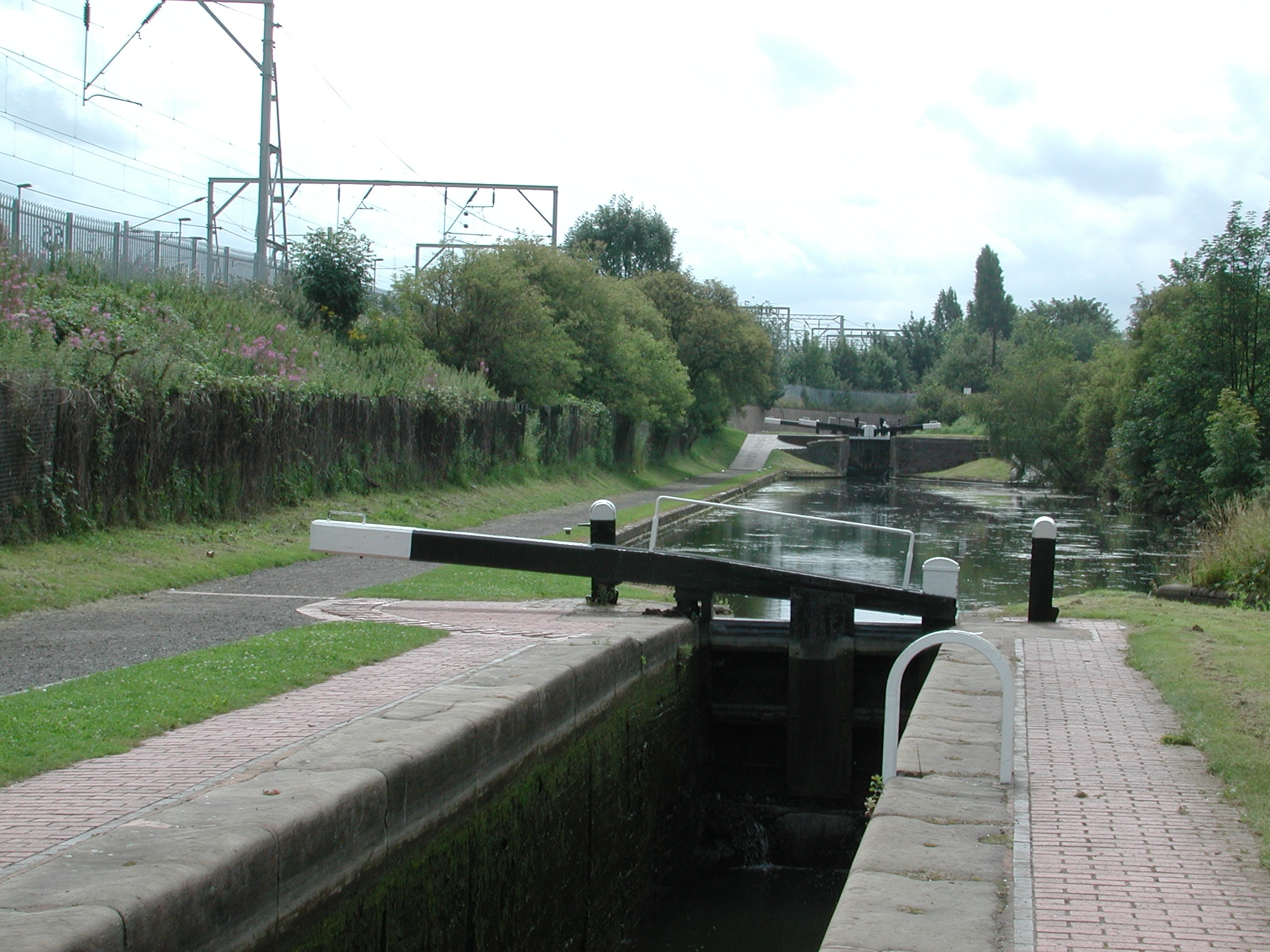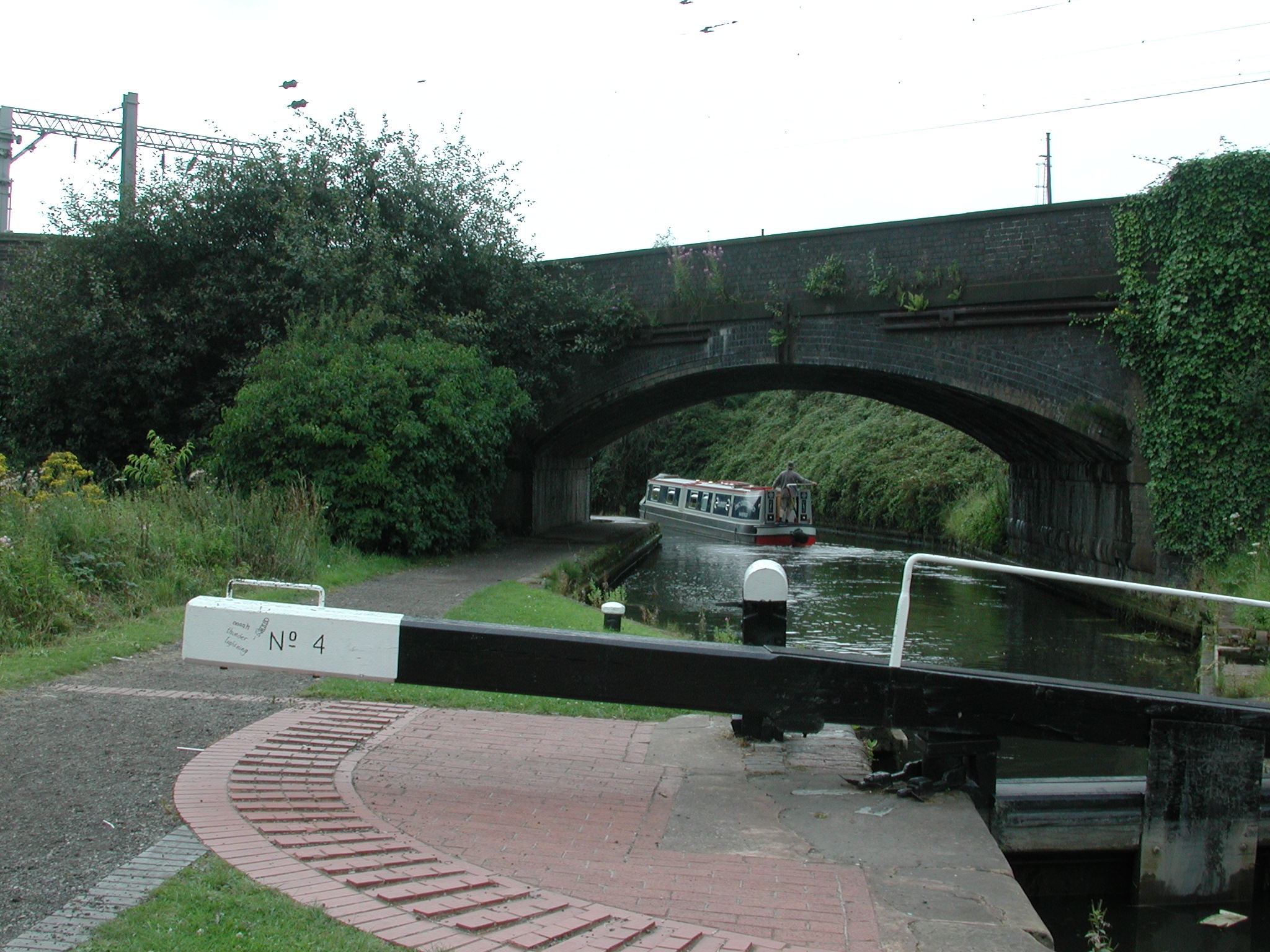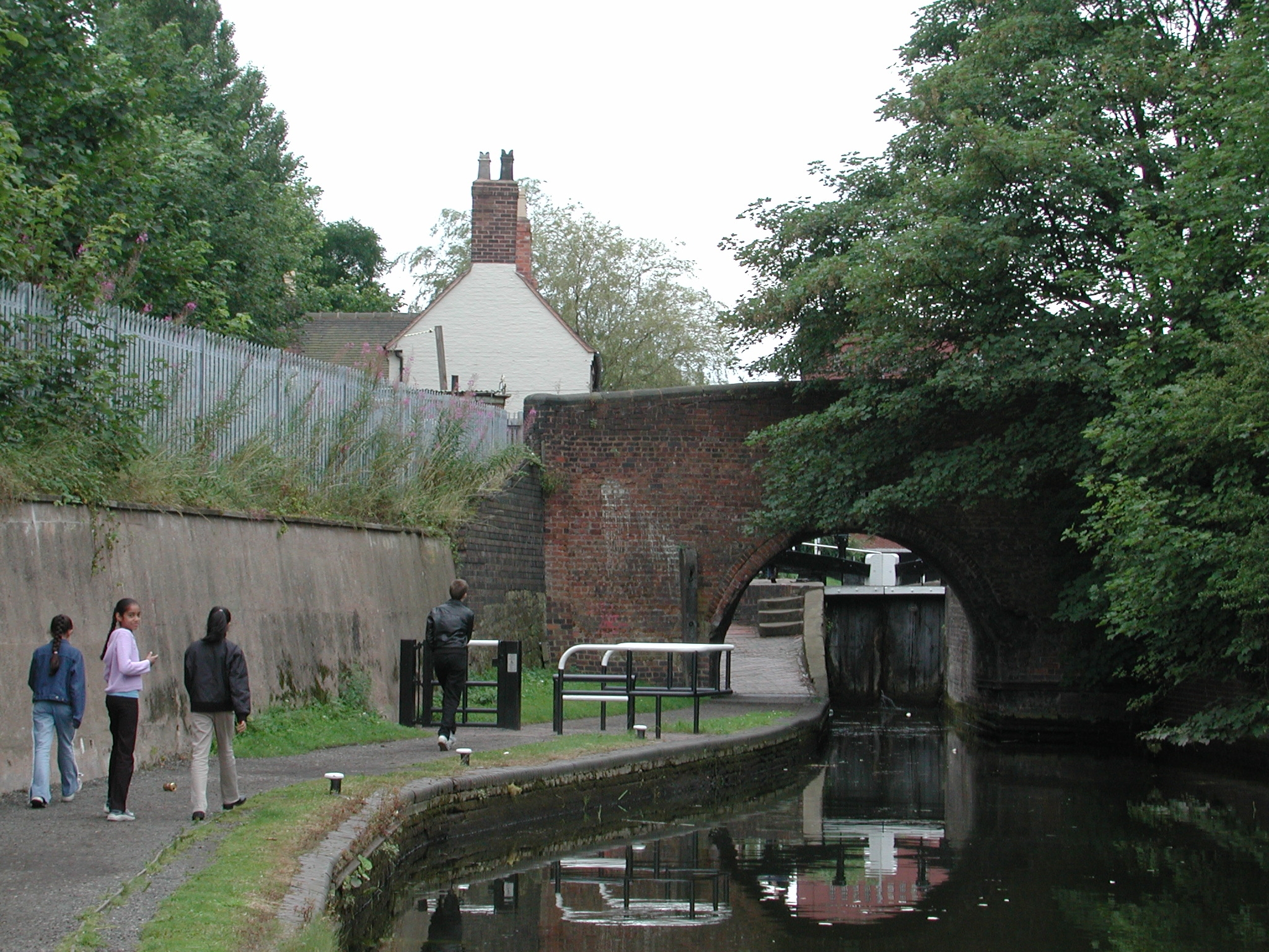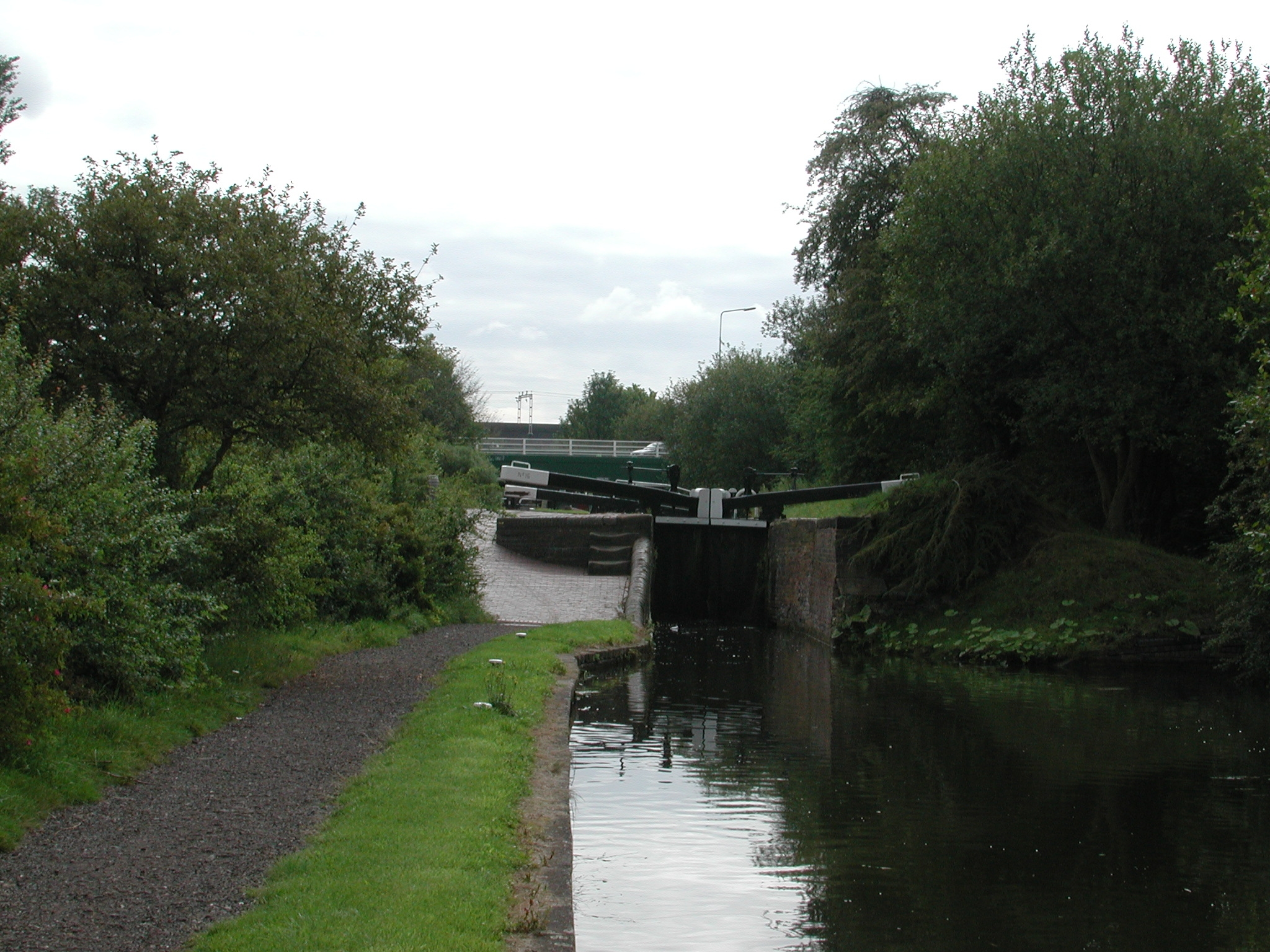 through tow path gate the other side of the towpath overbridge. BCN Main Line.