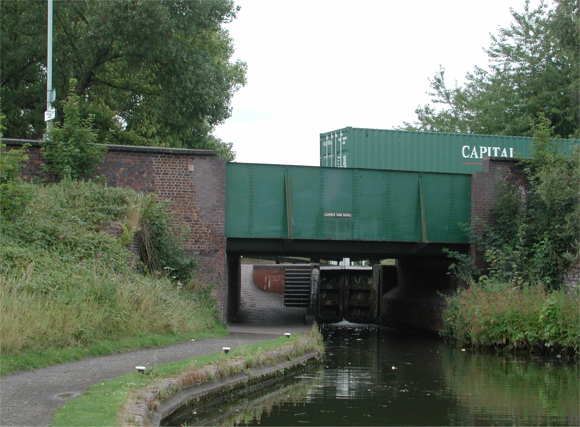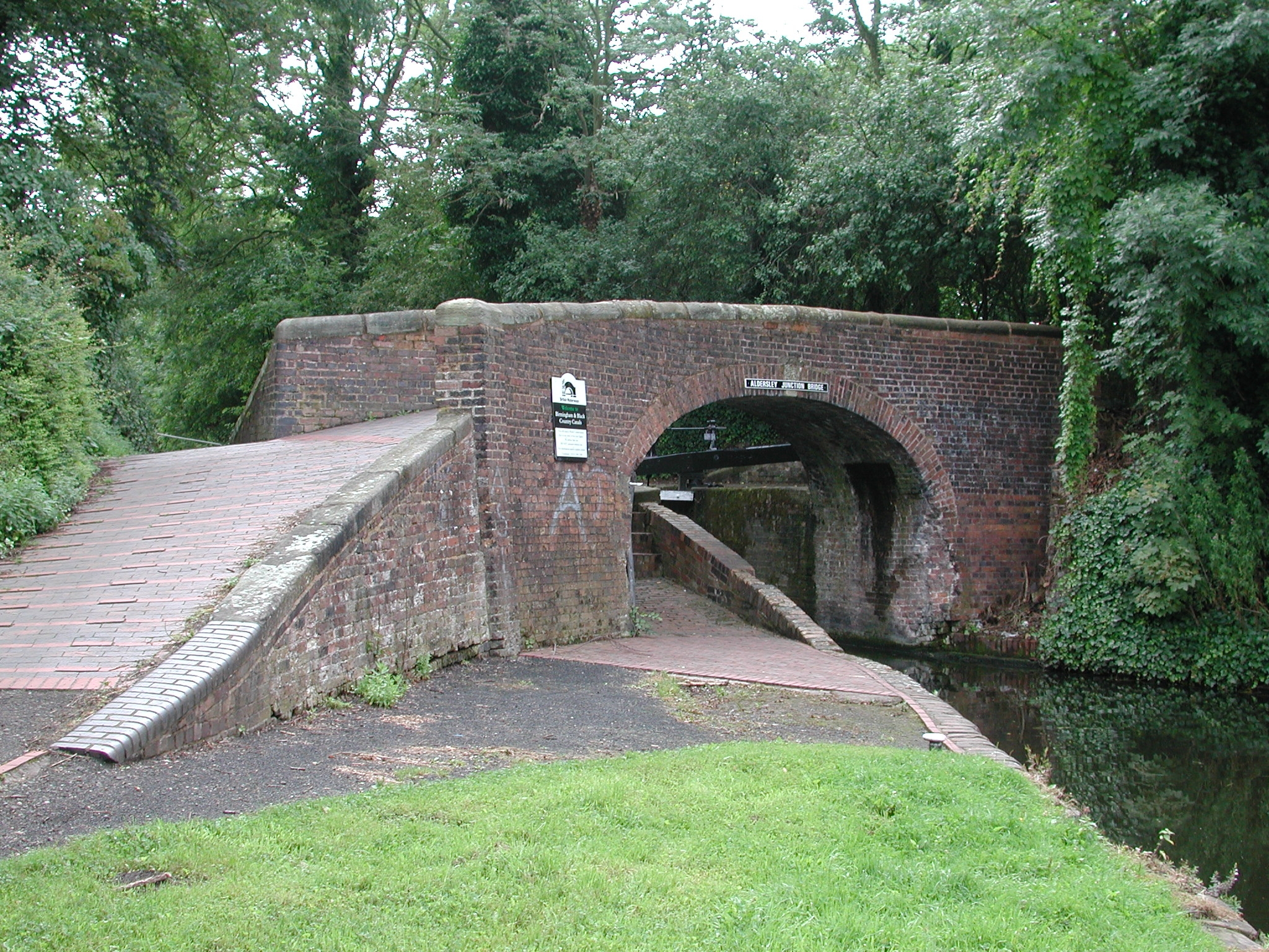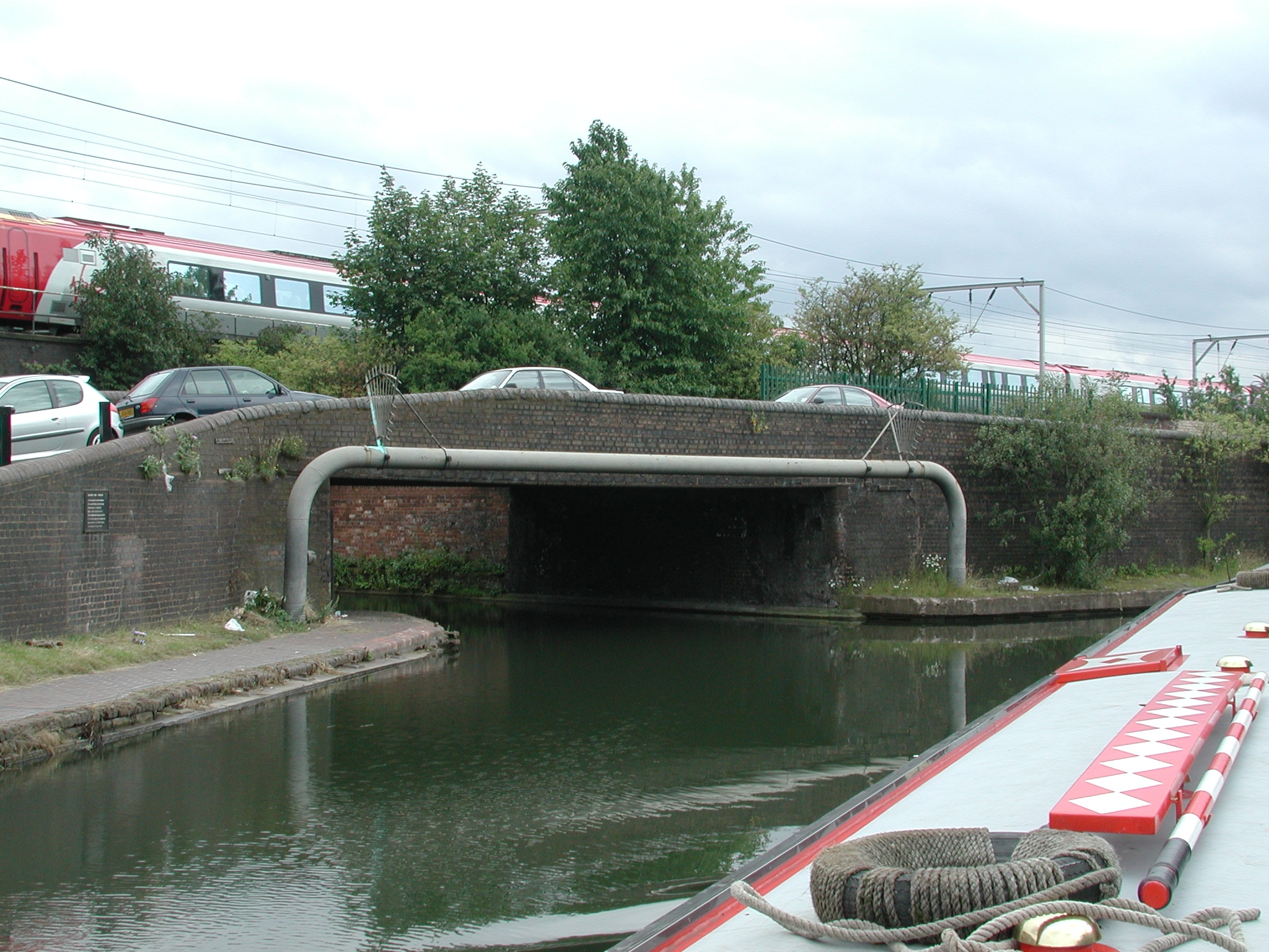 through tow path gate the other side of the towpath overbridge. BCN Main Line.