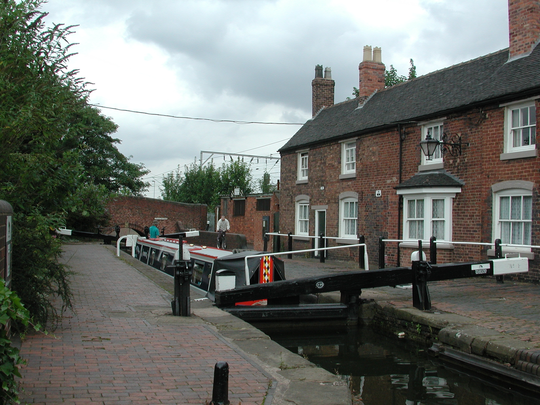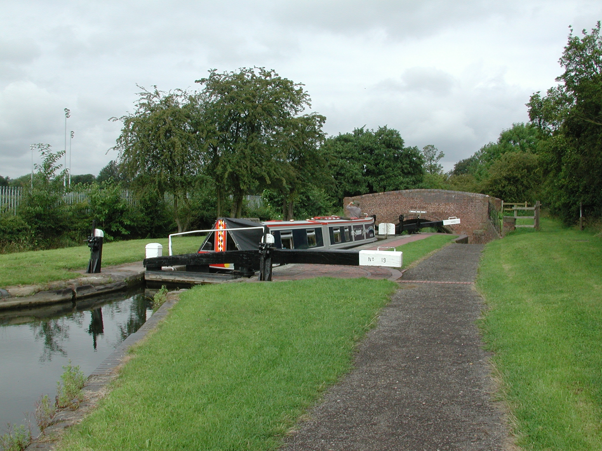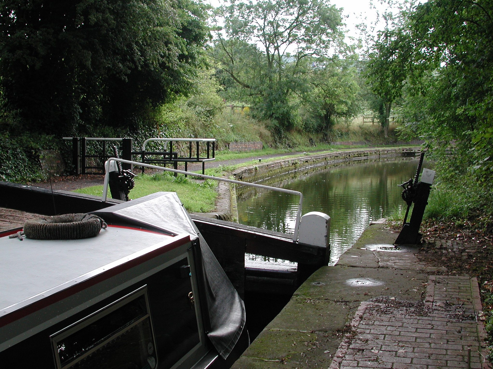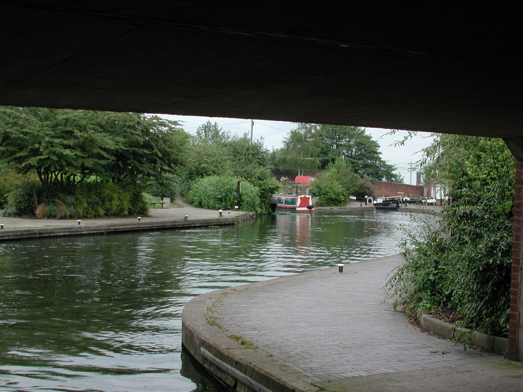 through tow path gate the other side of the towpath overbridge. BCN Main Line.