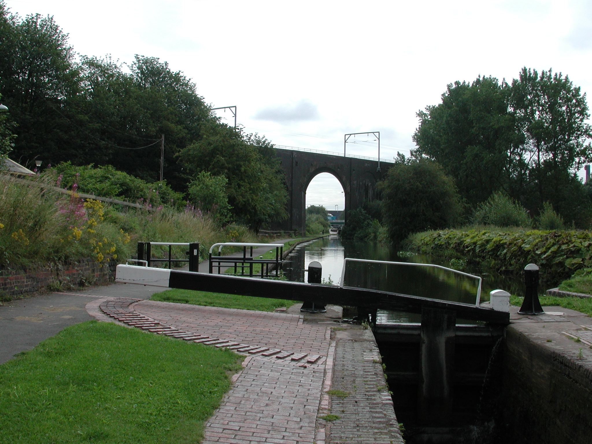 Lock No 13, looking up at Lock No 12 and the Stour Valley Railway Viaduct. Wolverhampton 21 Flight.