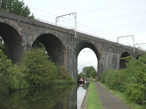 Looking back at Oxley Railway Viaducts and water main bridges. Staffs and Worcs Canal.