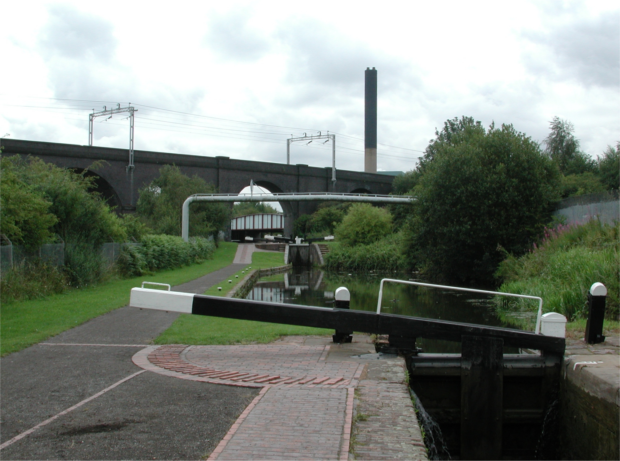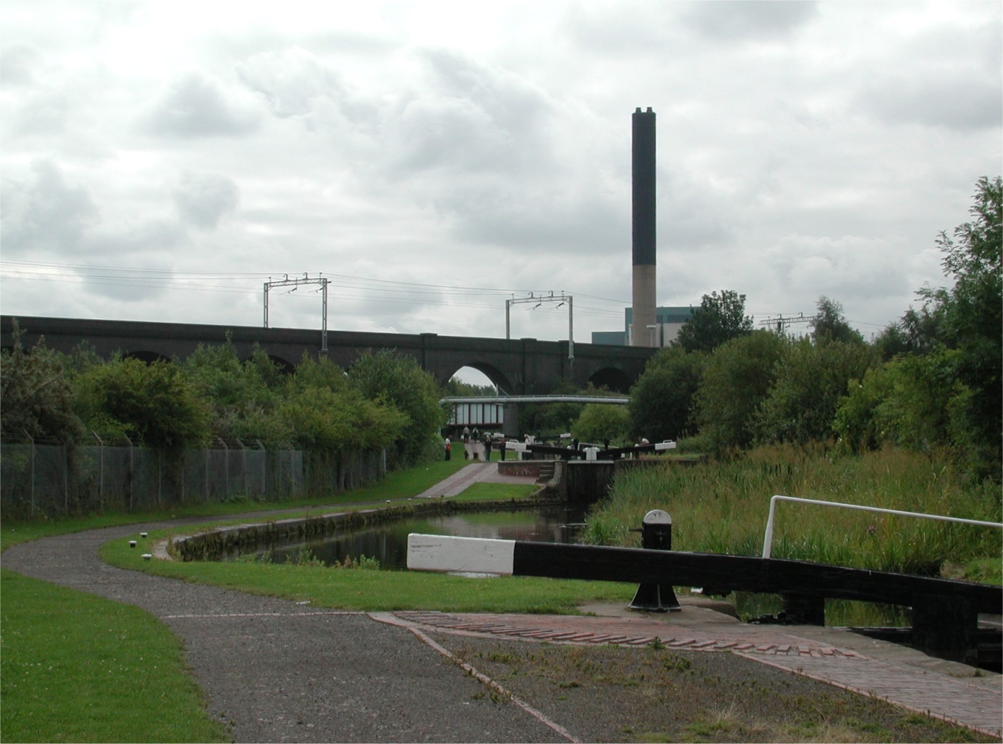 Viaduct. The chimney belongs to the waste incinerator plant. Wolverhampton 21 Flight.