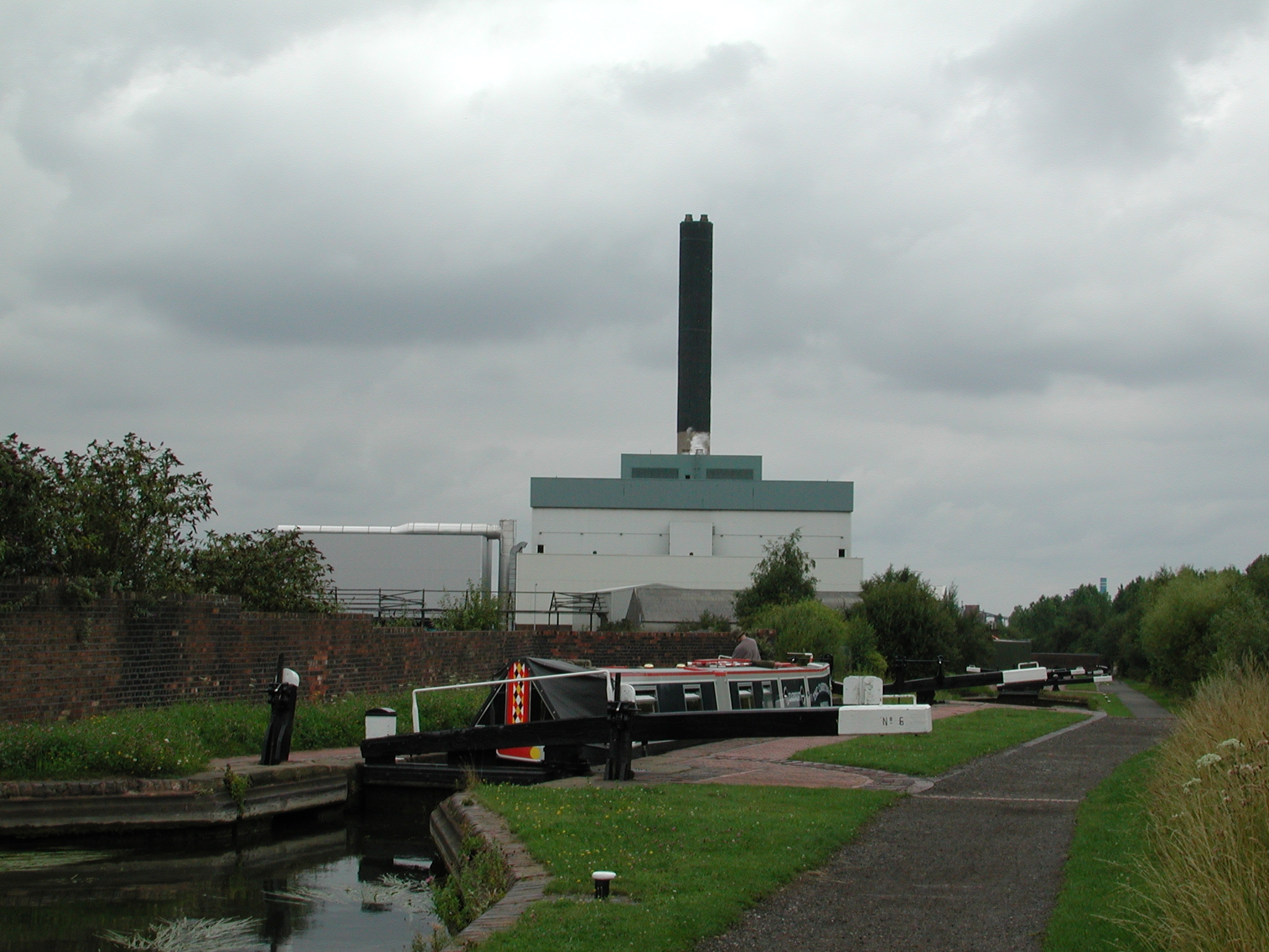 Looking down at Lock No 6 and the incinerator plant. Wolverhampton 21 Flight.