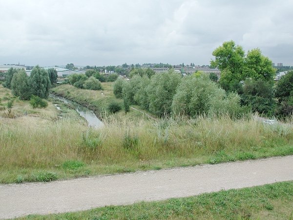 Looking back at River Tame Embankment. Walsall Canal. BCN.