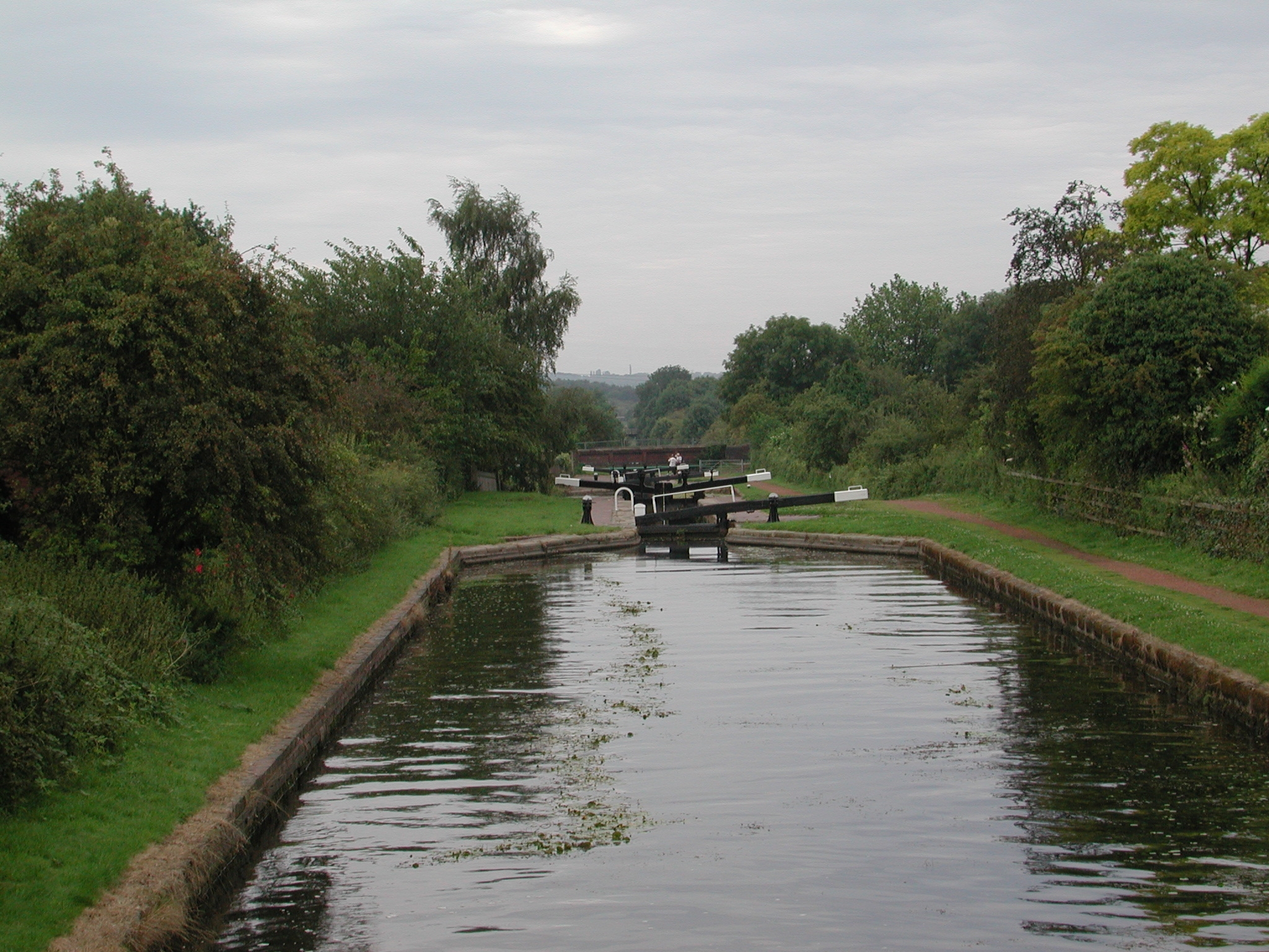Looking back at Lock No 3 and Fiveways Bridge. Rushall Flight.