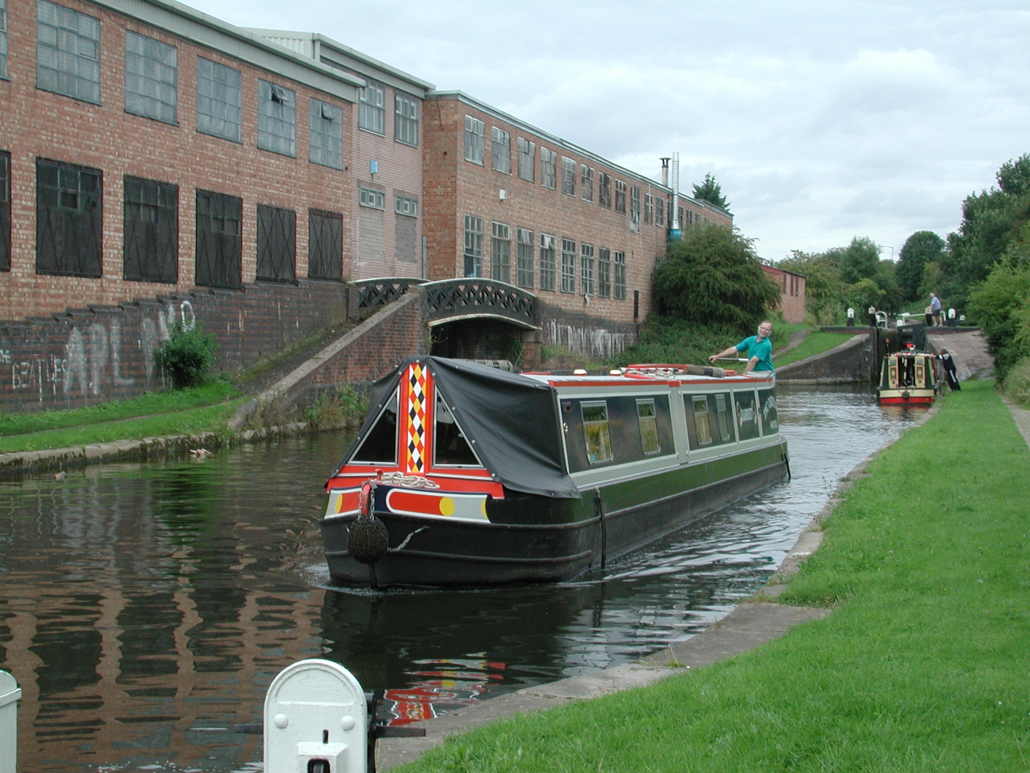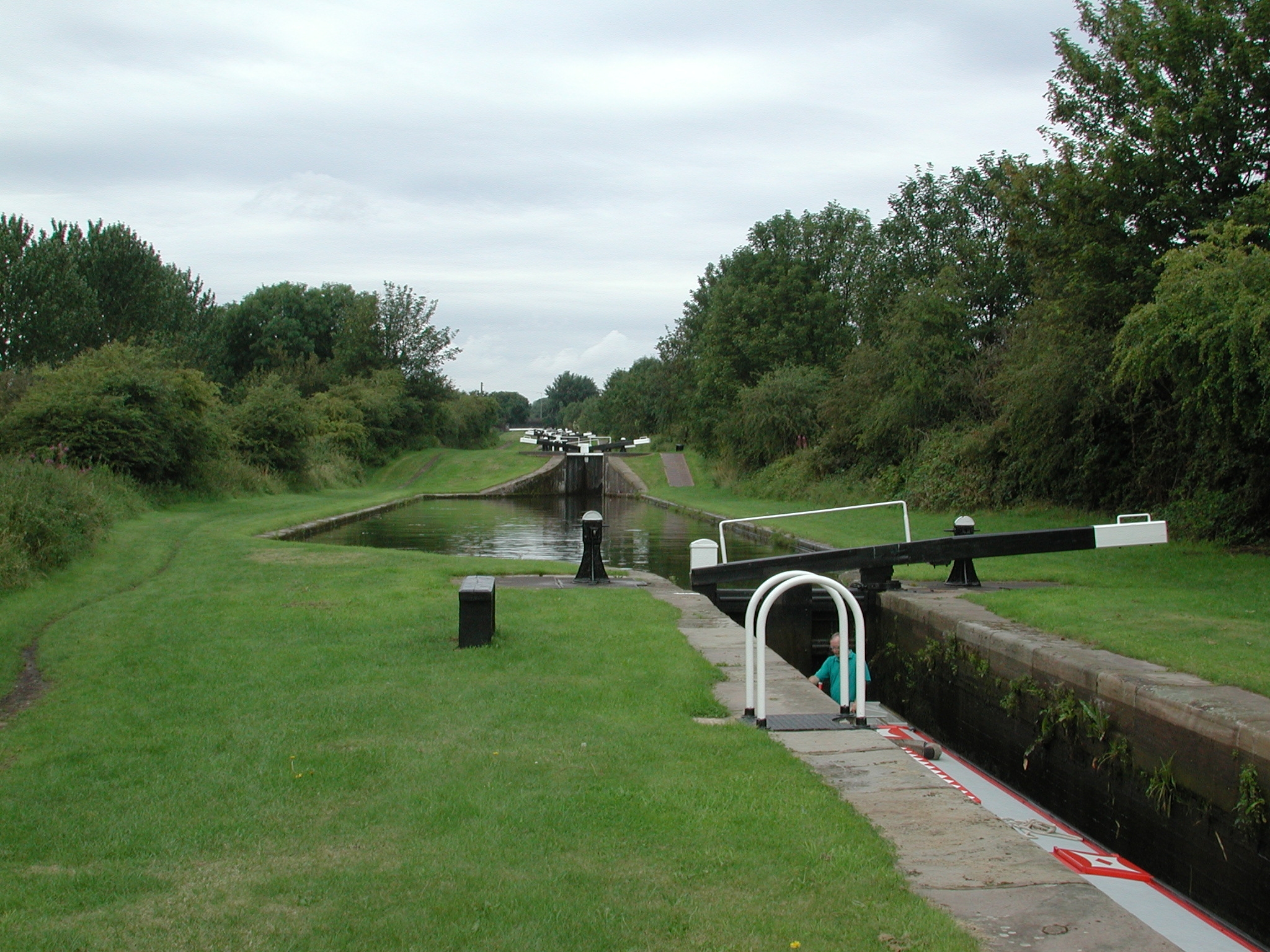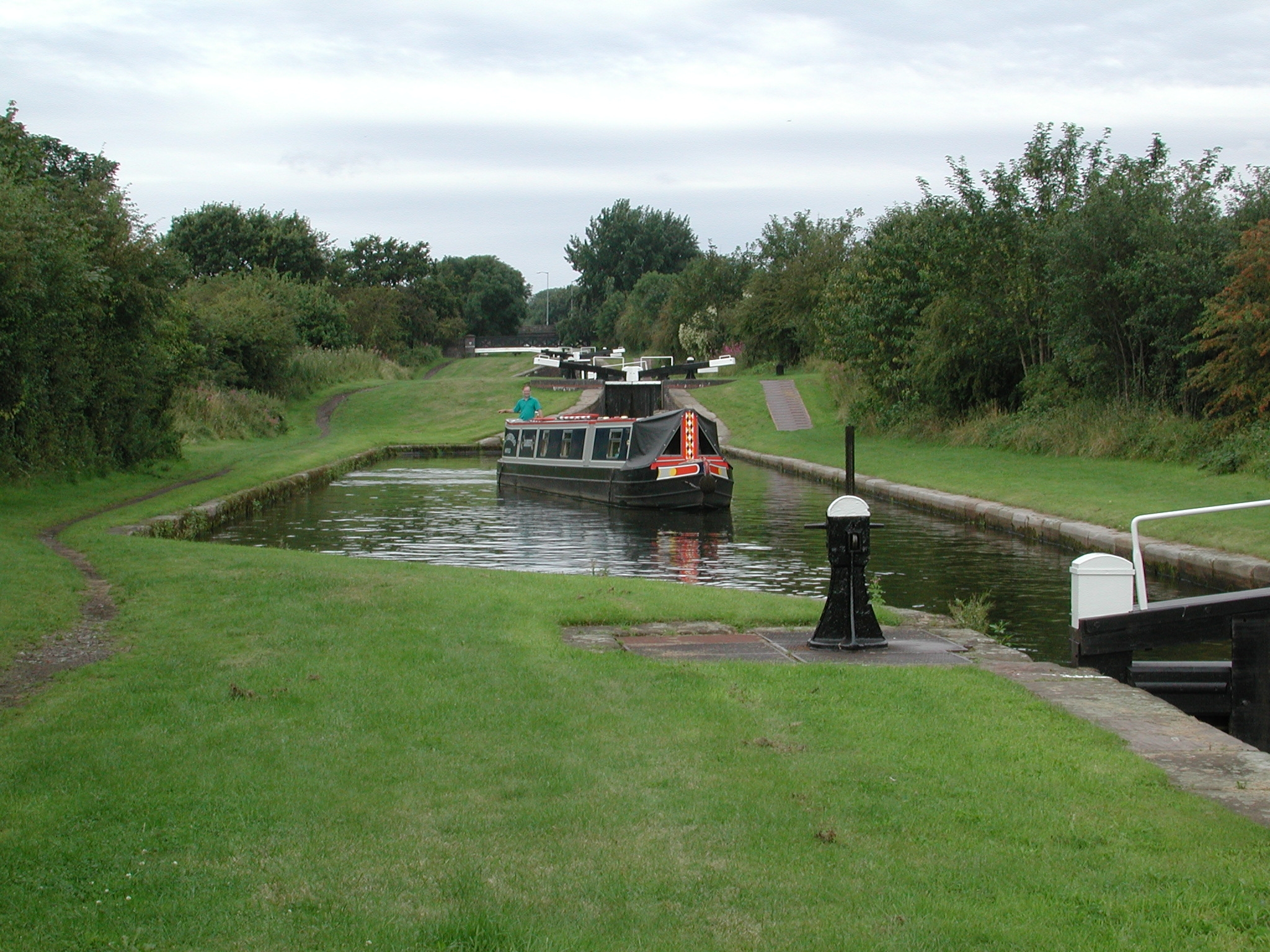 FIRST right onto the Birmingham and Fazeley Canal towards Birmingham. The improved Aston Flight of 11 locks took between 12:05 to 13:30.