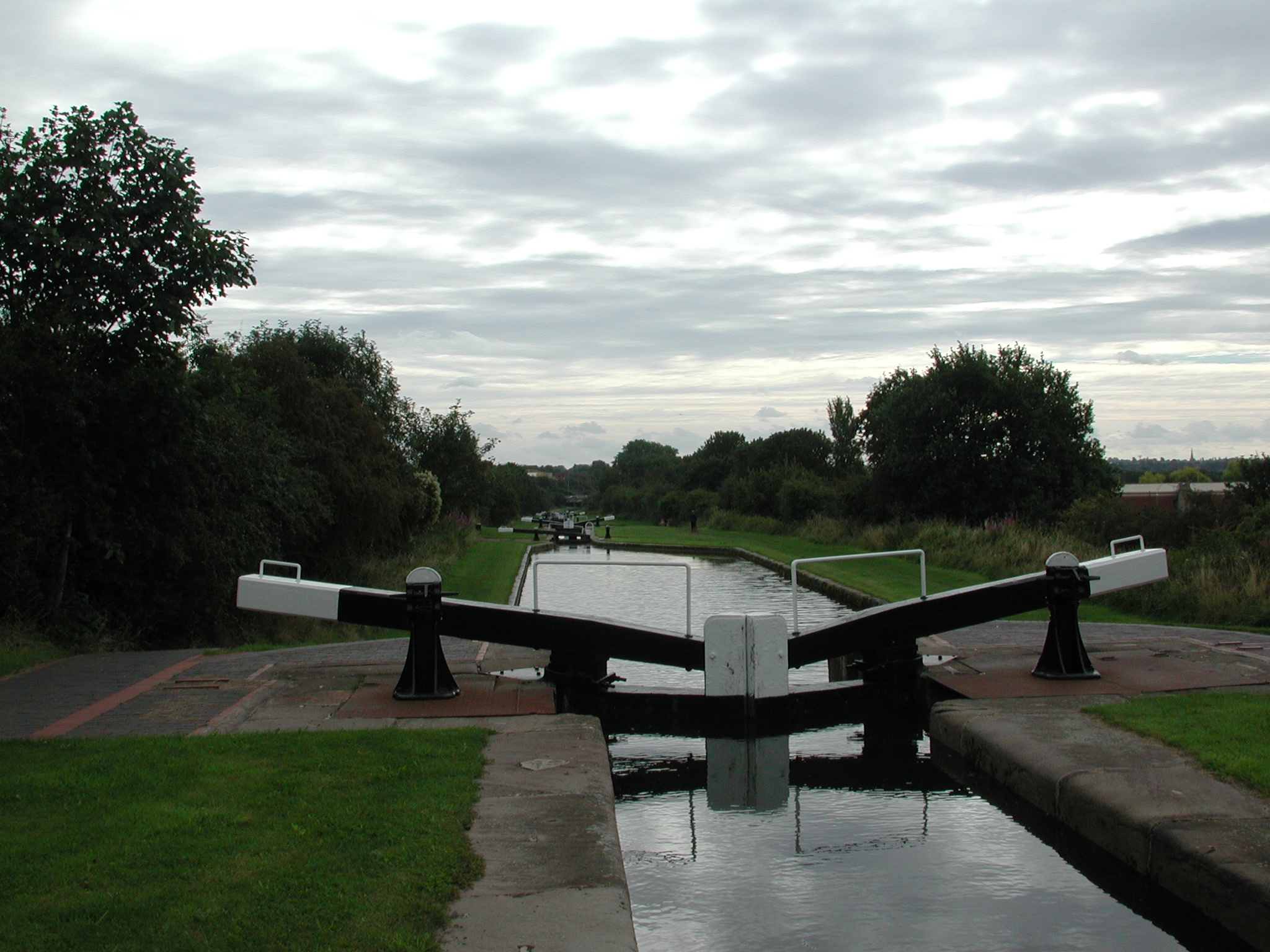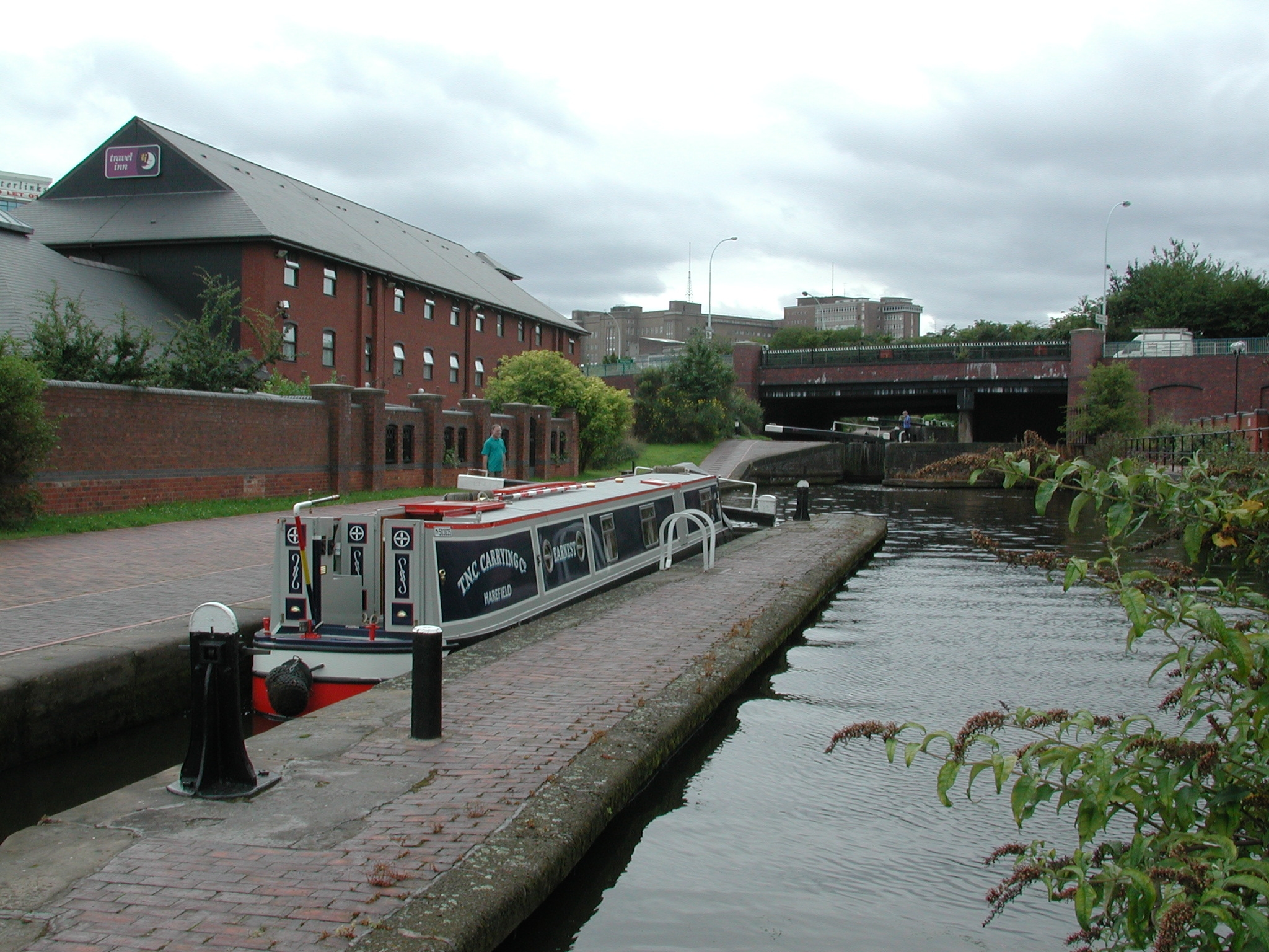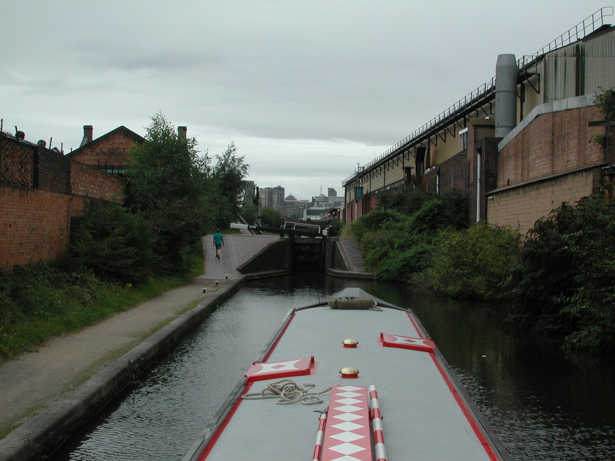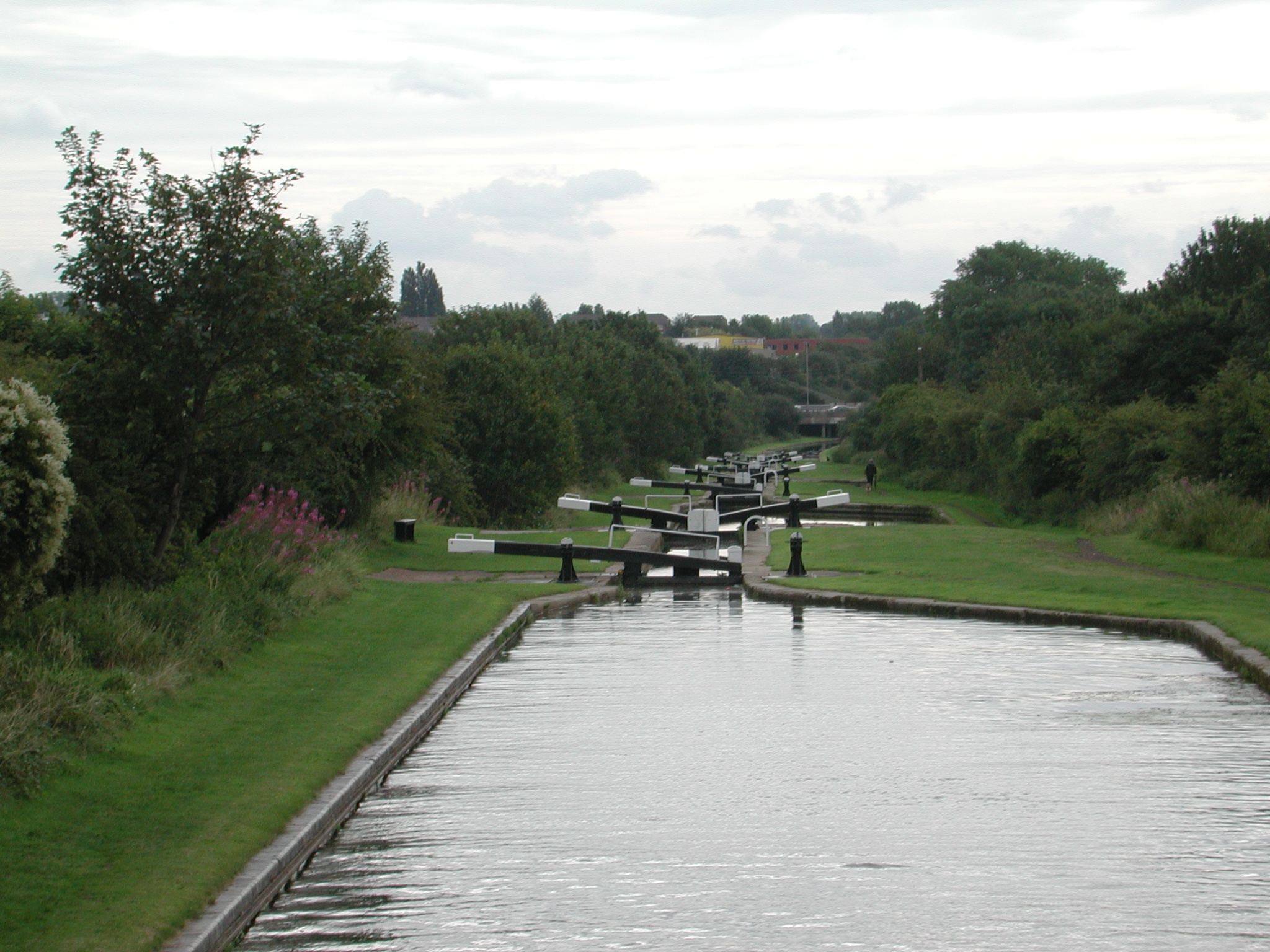 FIRST right onto the Birmingham and Fazeley Canal towards Birmingham. The improved Aston Flight of 11 locks took between 12:05 to 13:30.