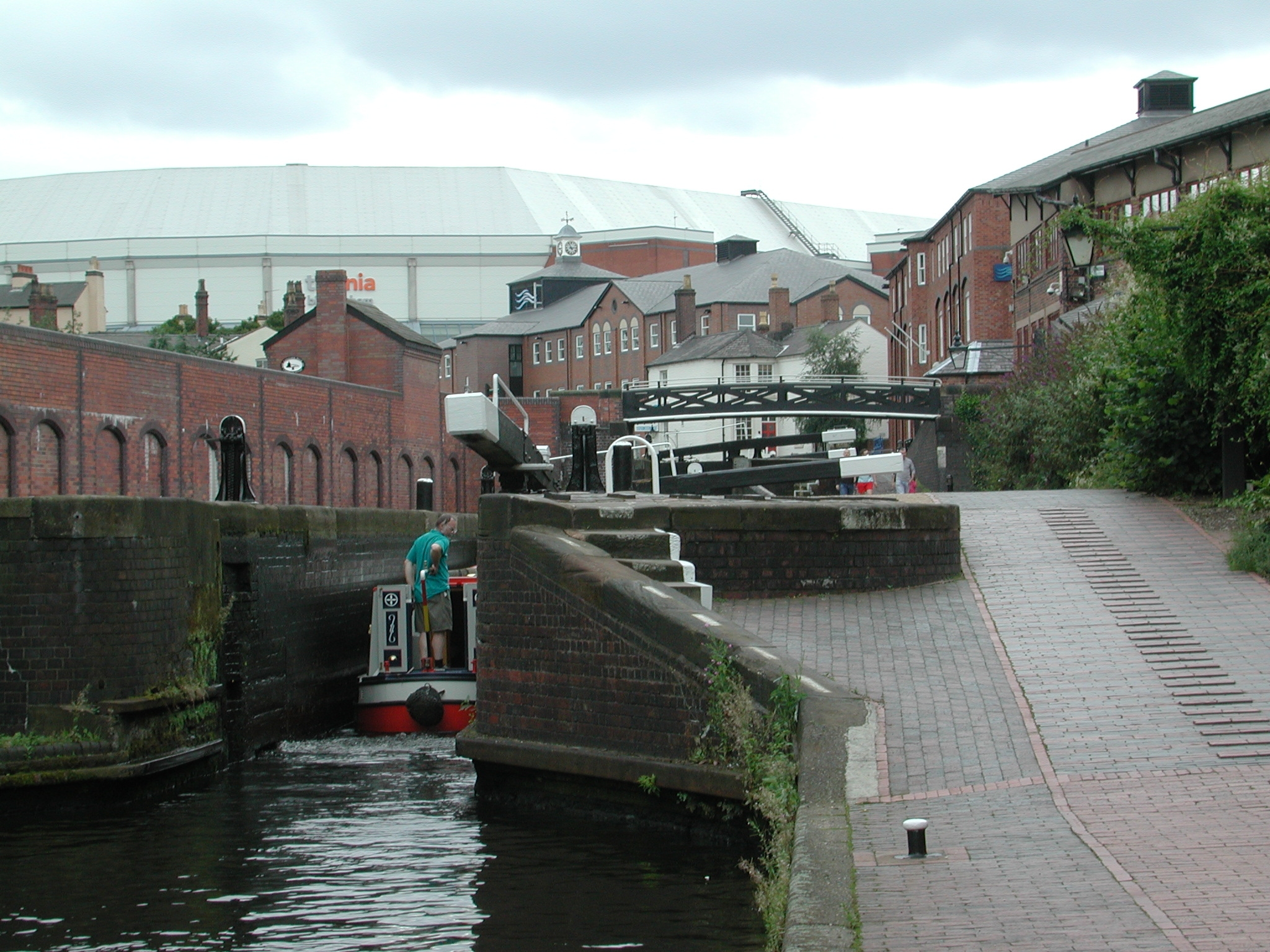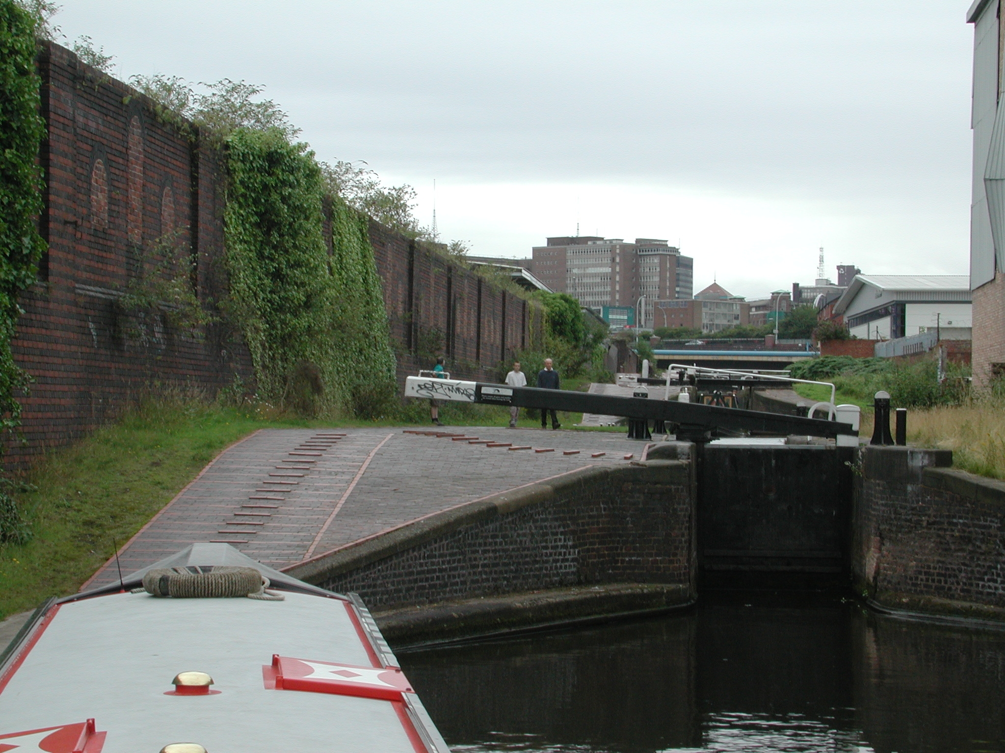 It was right at Aston Junction, to carry on into Birmingham on the Birmingham and Fazeley Canal. 13:45 saw us at Farmers Bridge Bottom Lock and it was an interesting Sunday afternoon passage up this classic flight of locks. I say interesting, because there were two blokes doing something involving belts and being naked,
