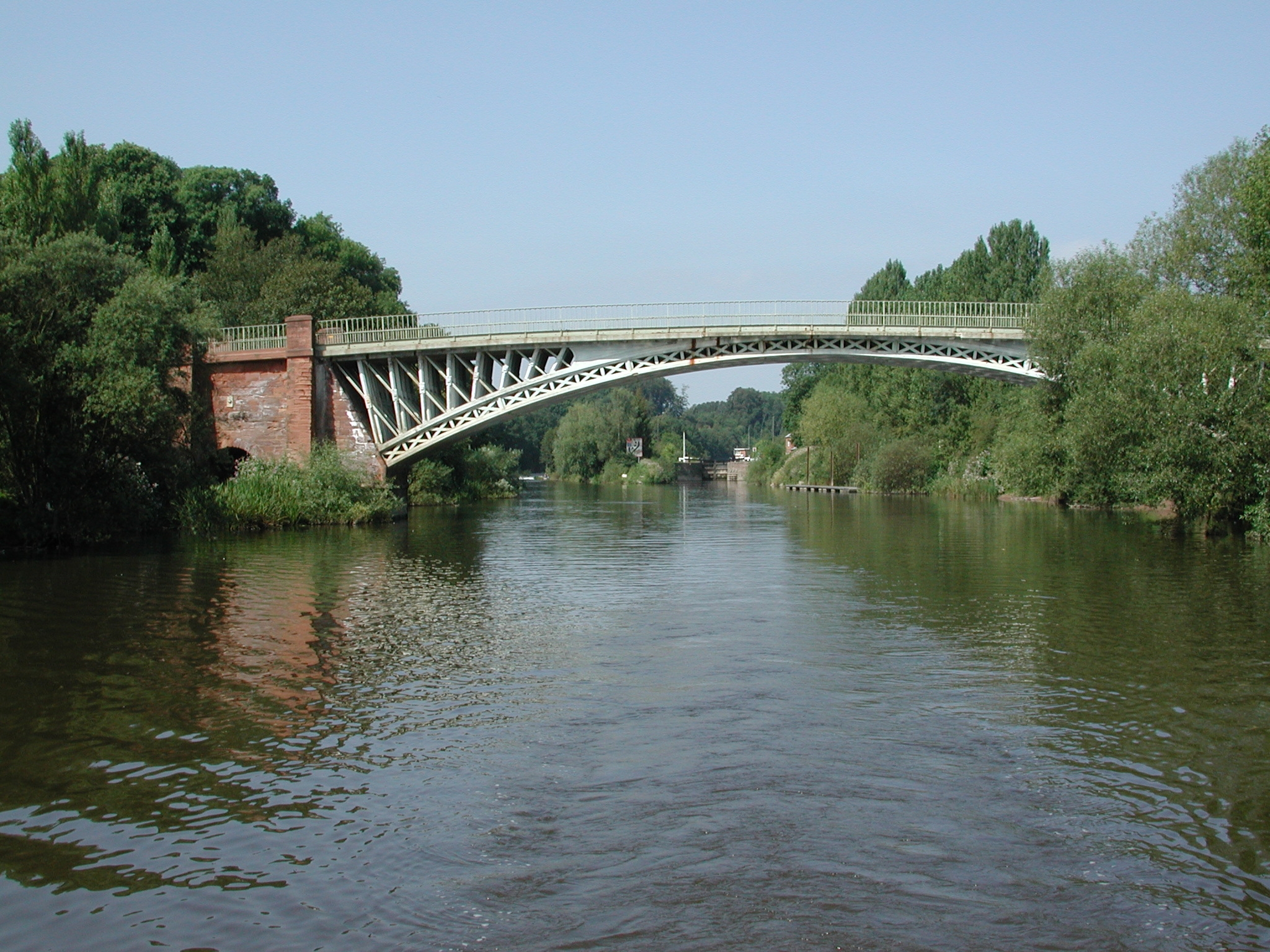 Looking back at Holt Lock and Holt Fleet Bridge. River Severn.