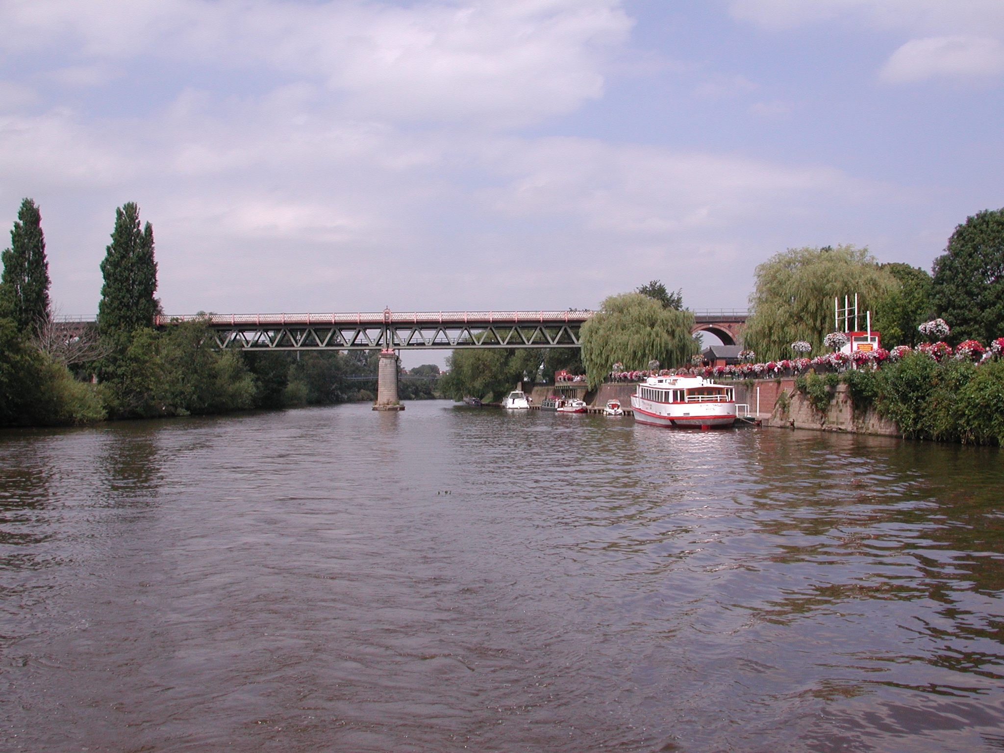 Worcester. Looking back at railway bridge. River Severn.