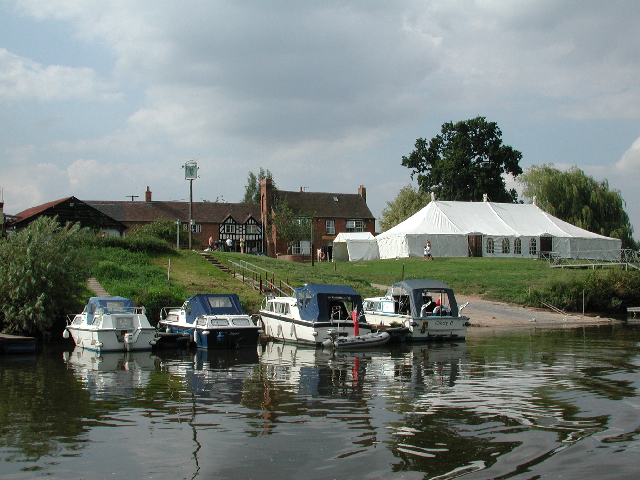 Yew Tree Inn Moorings at Chaceley Stoke. River Severn.