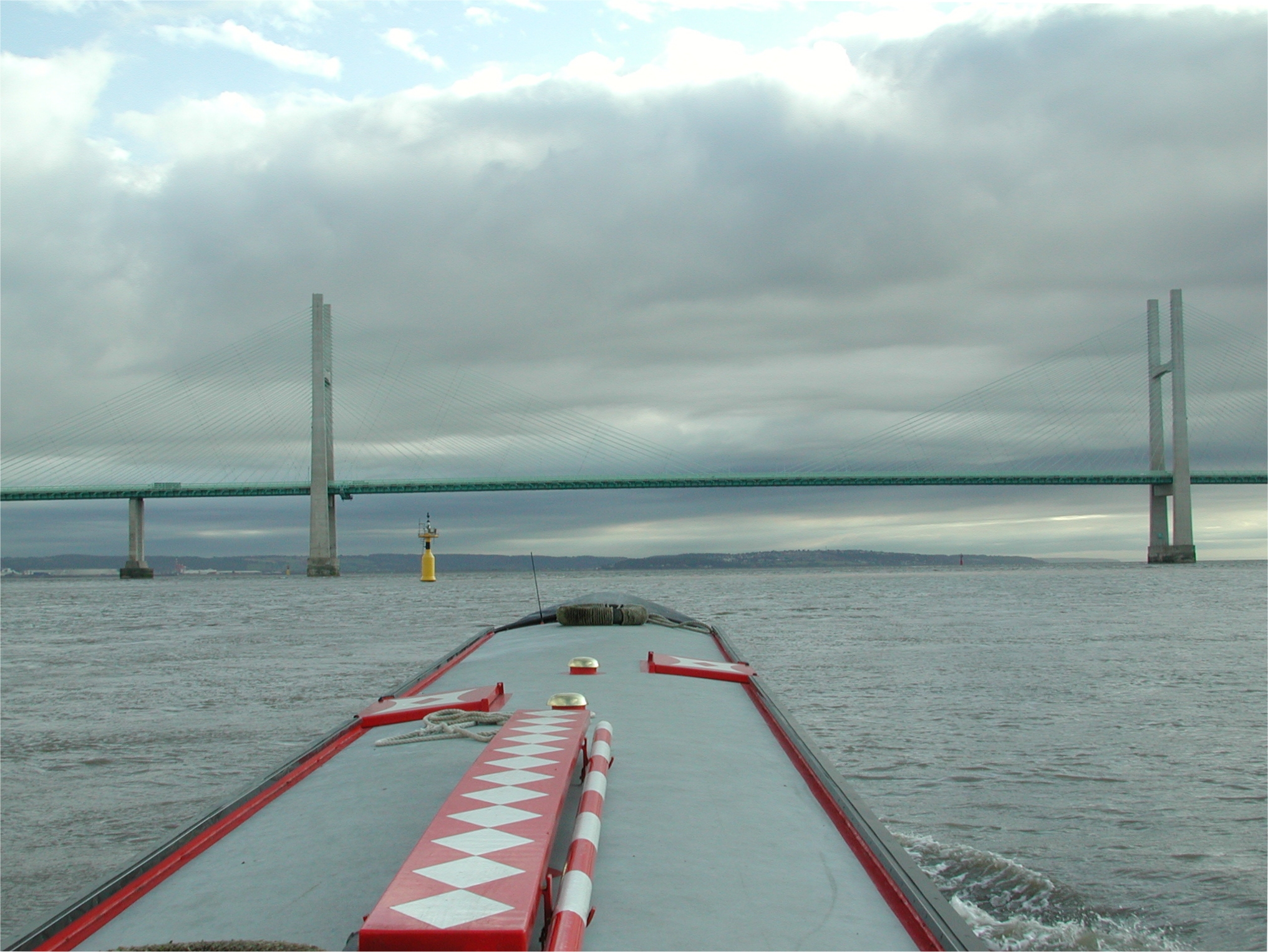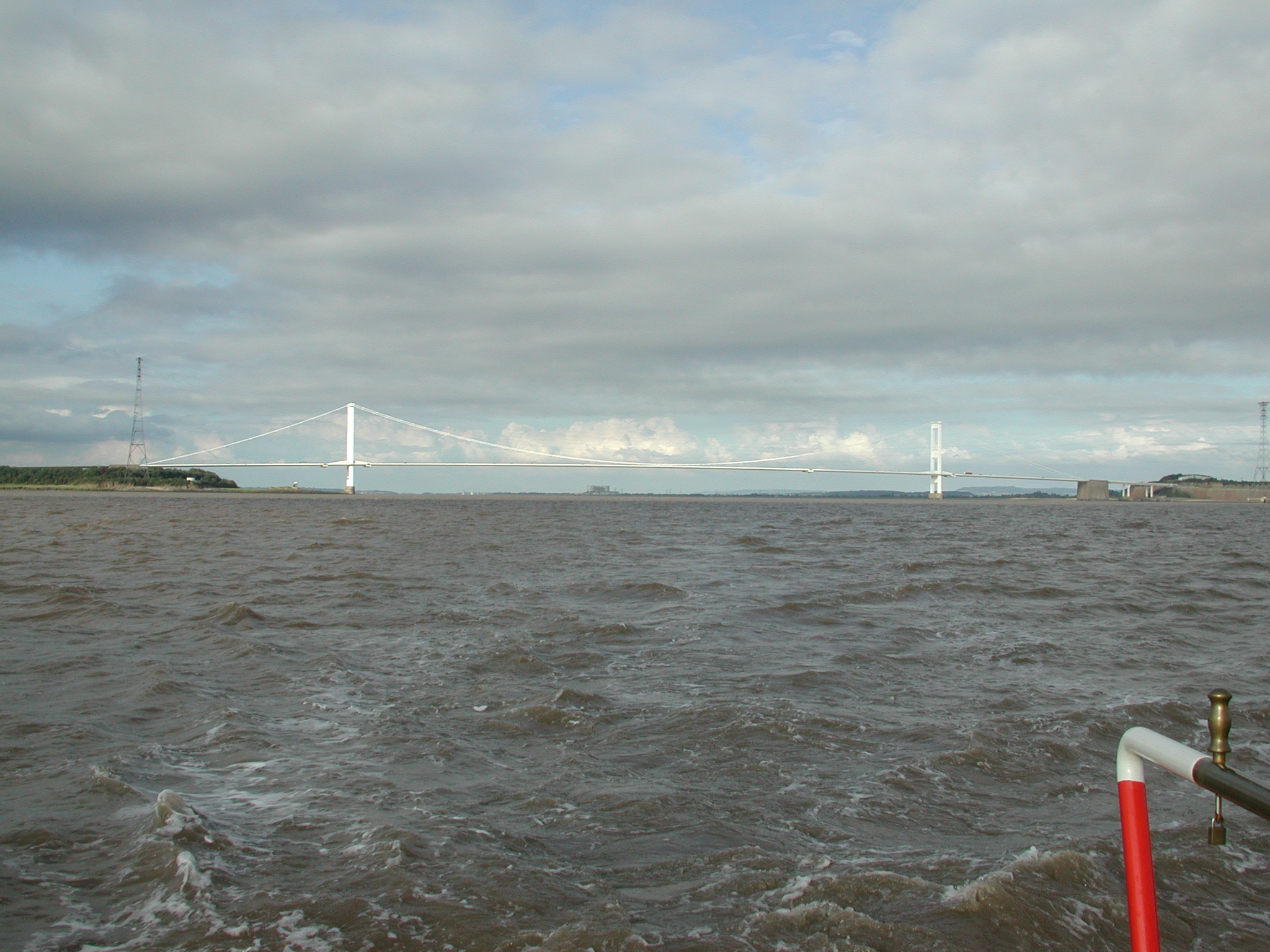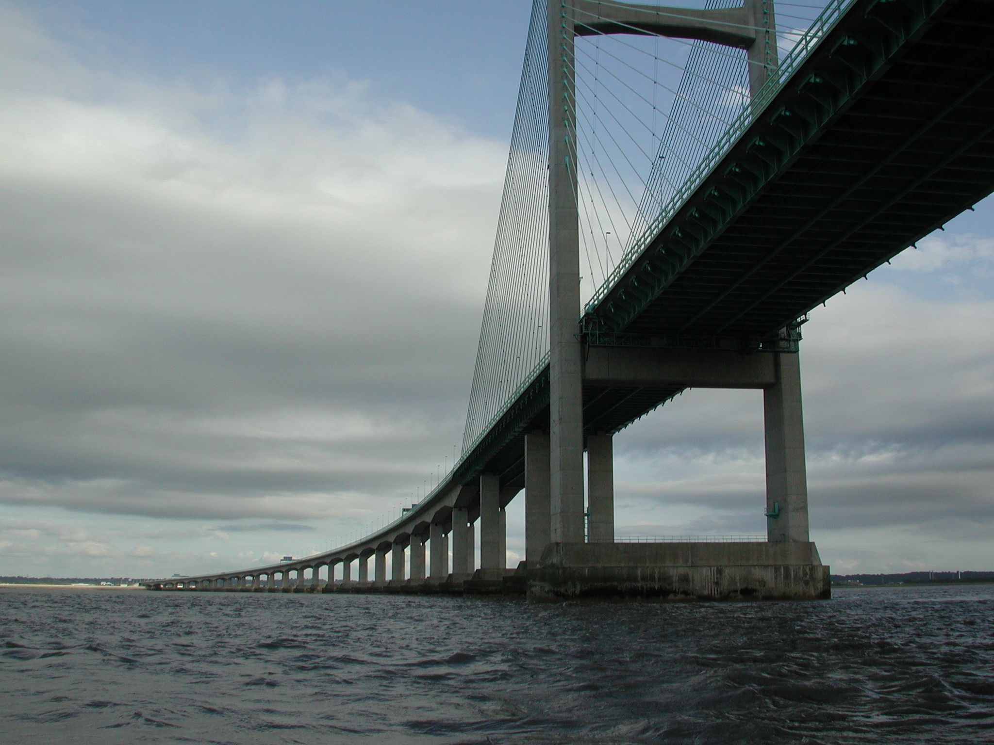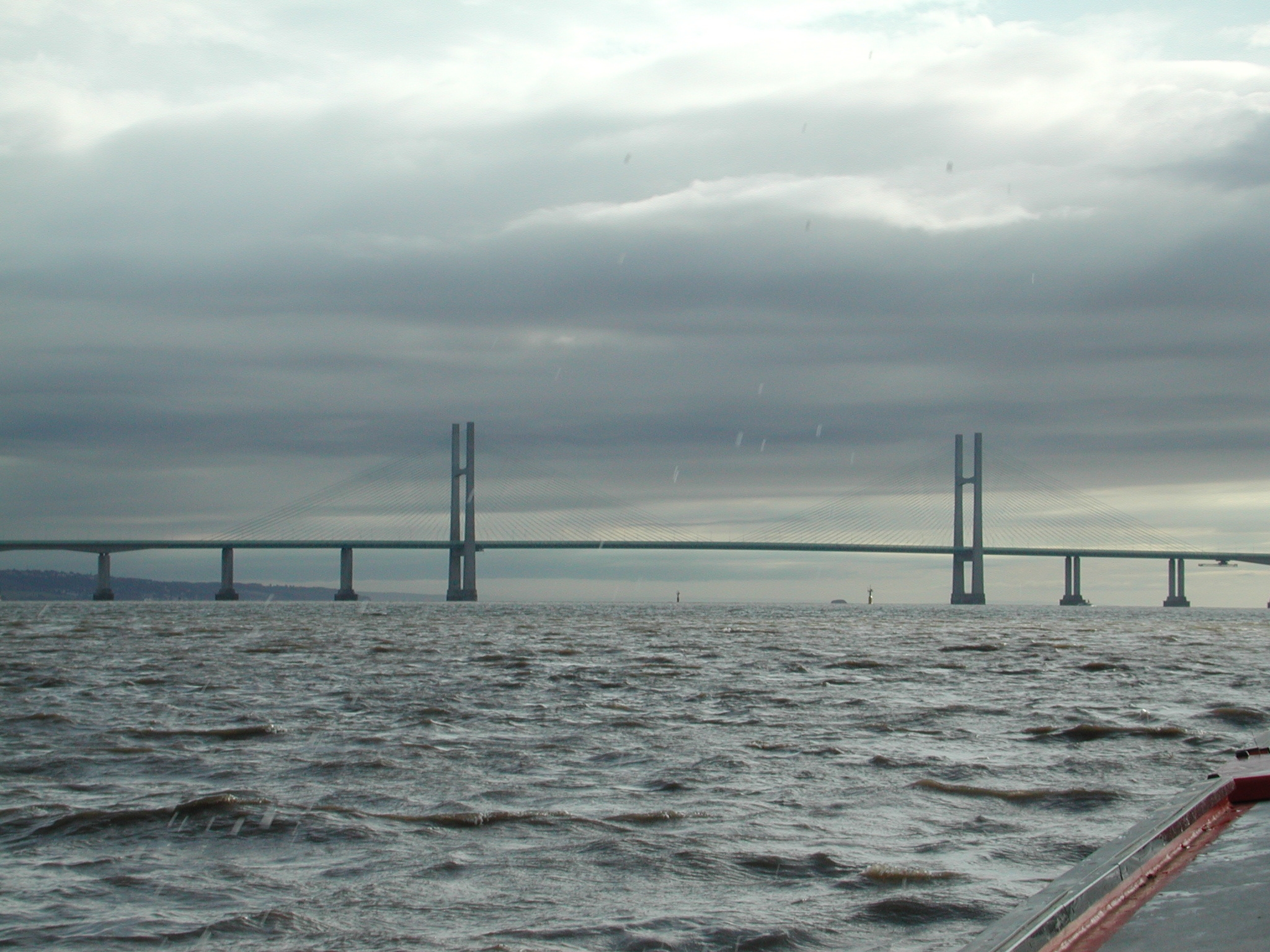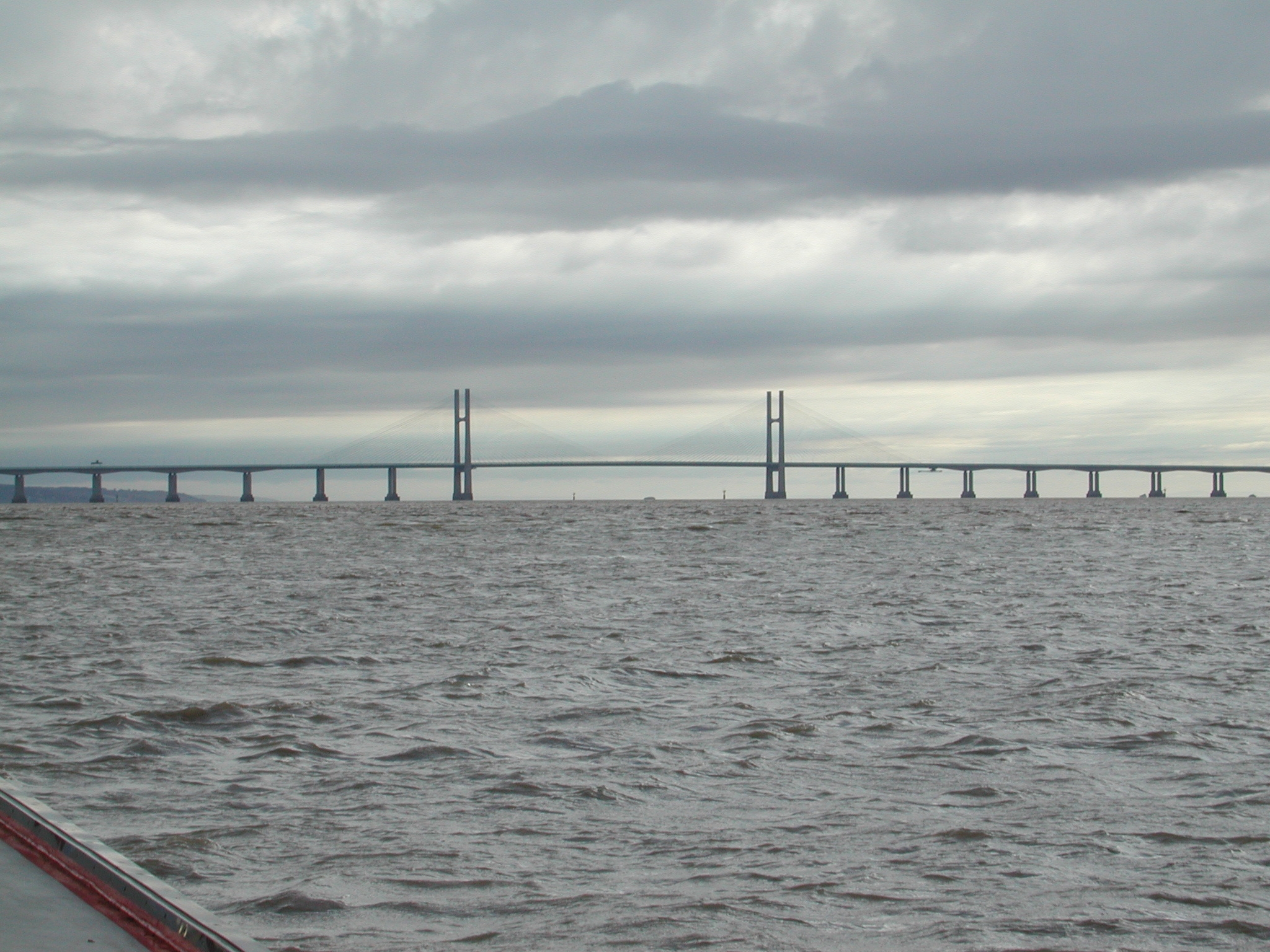 Looking down to the Severn Second Crossing. Denny Island lined up between the