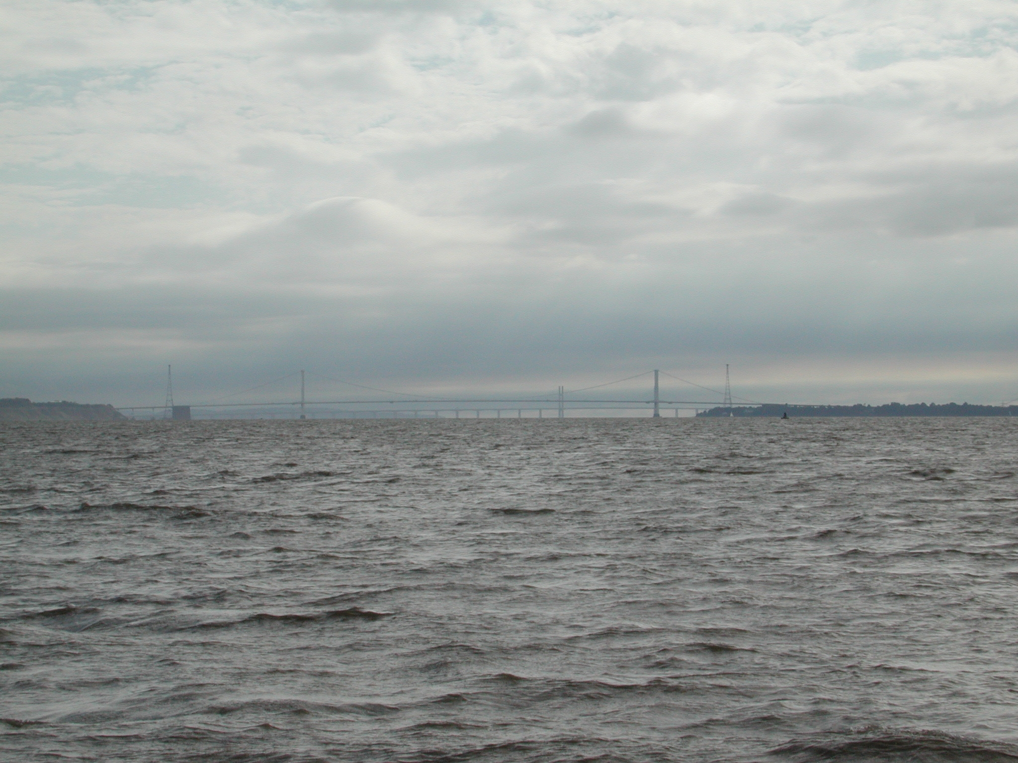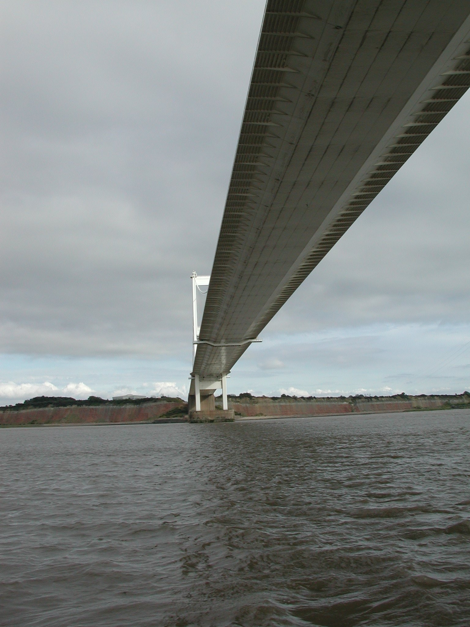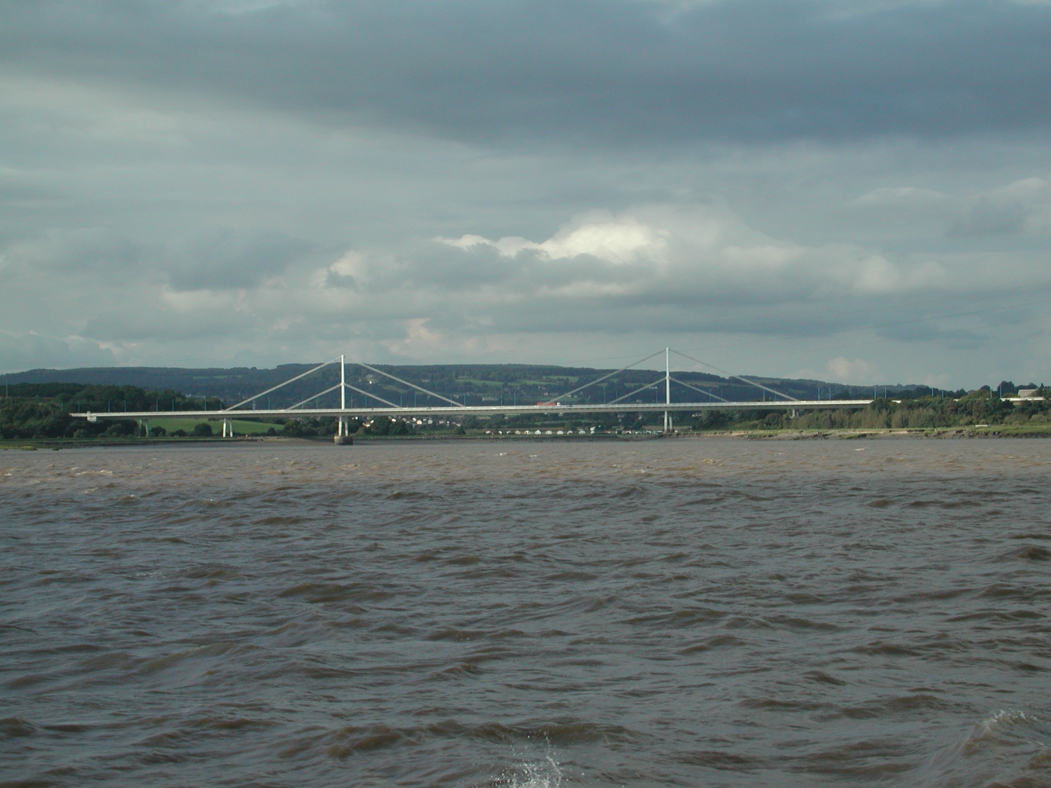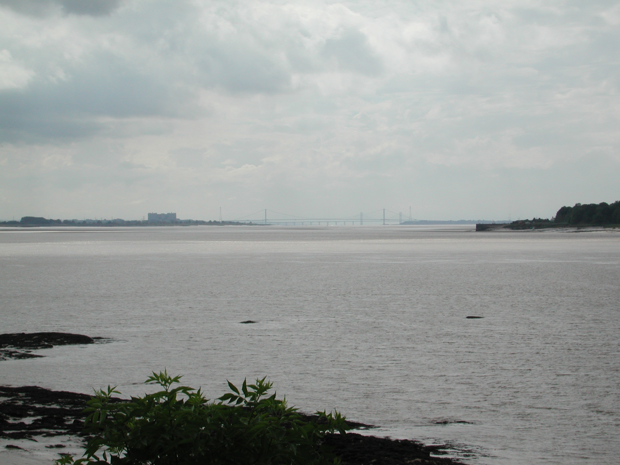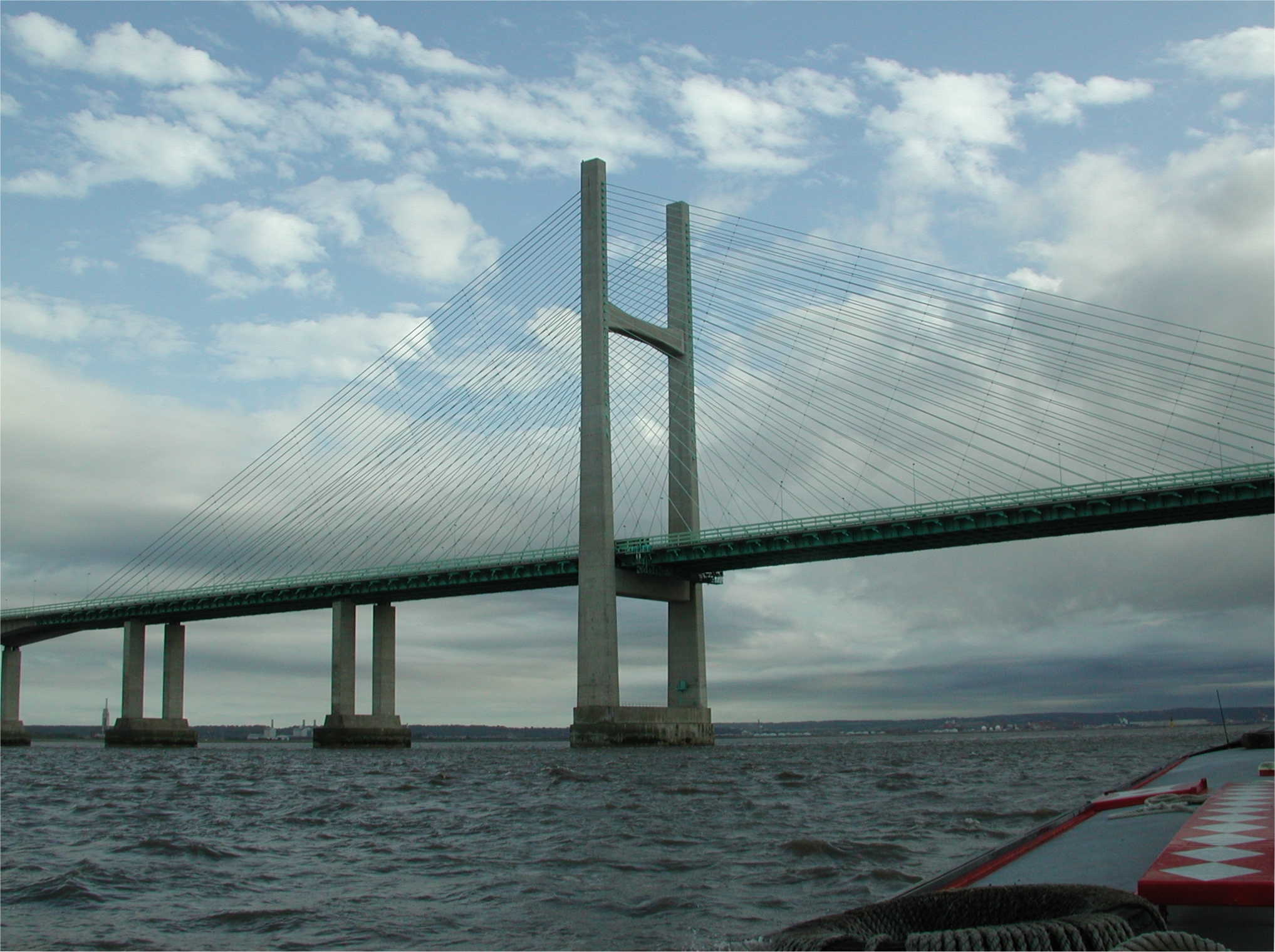 Looking down to the Severn Second Crossing. Denny Island lined up between the