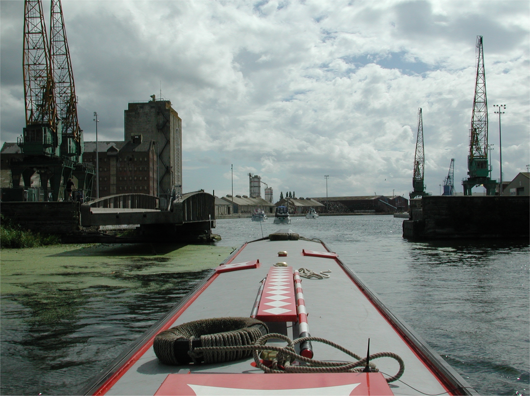 Lining the boats up in the Entrance Lock. Sharpness Docks.