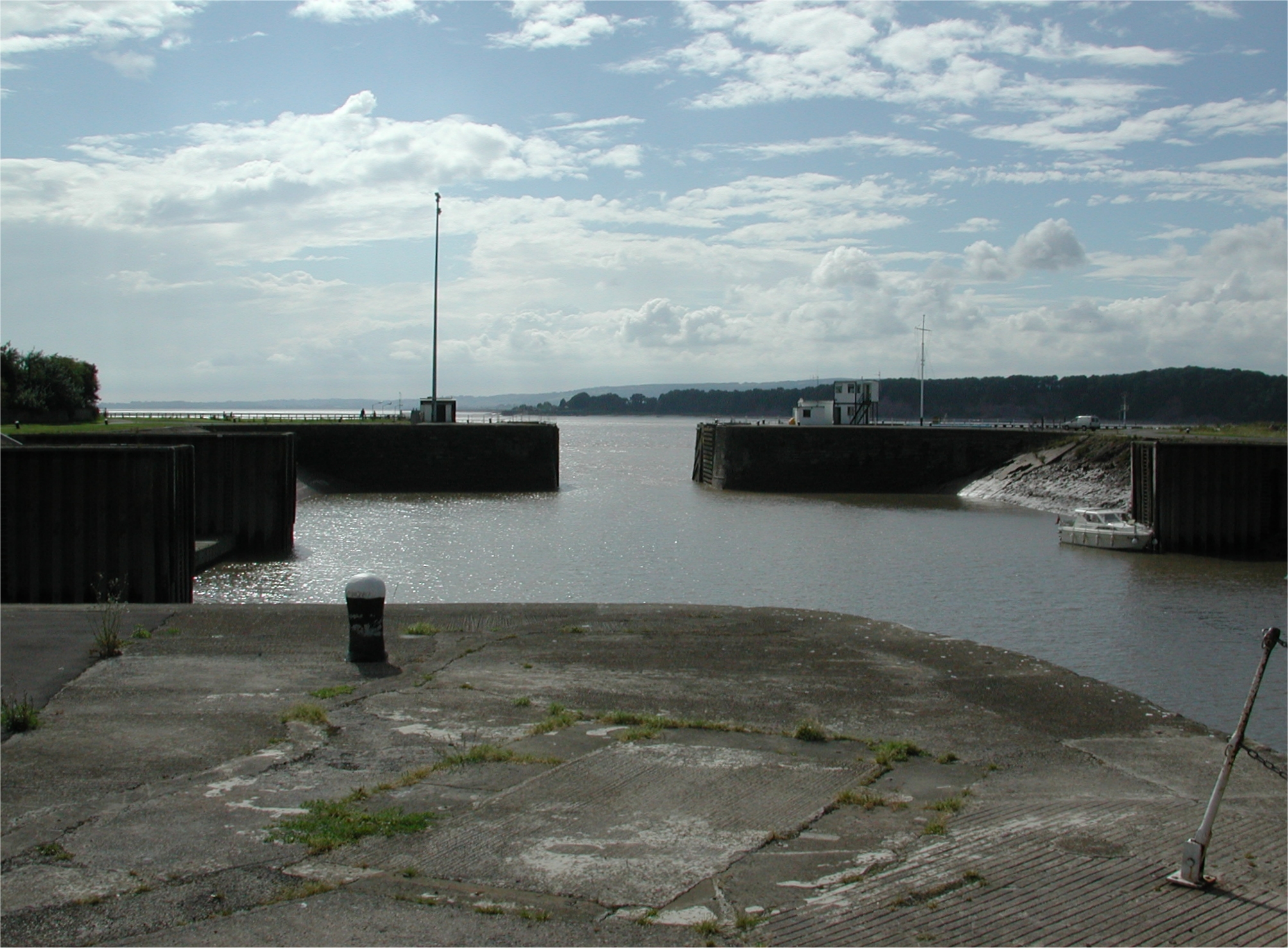 Looking below the Entrance Lock at the semi-tidal basin. Sharpness Docks.