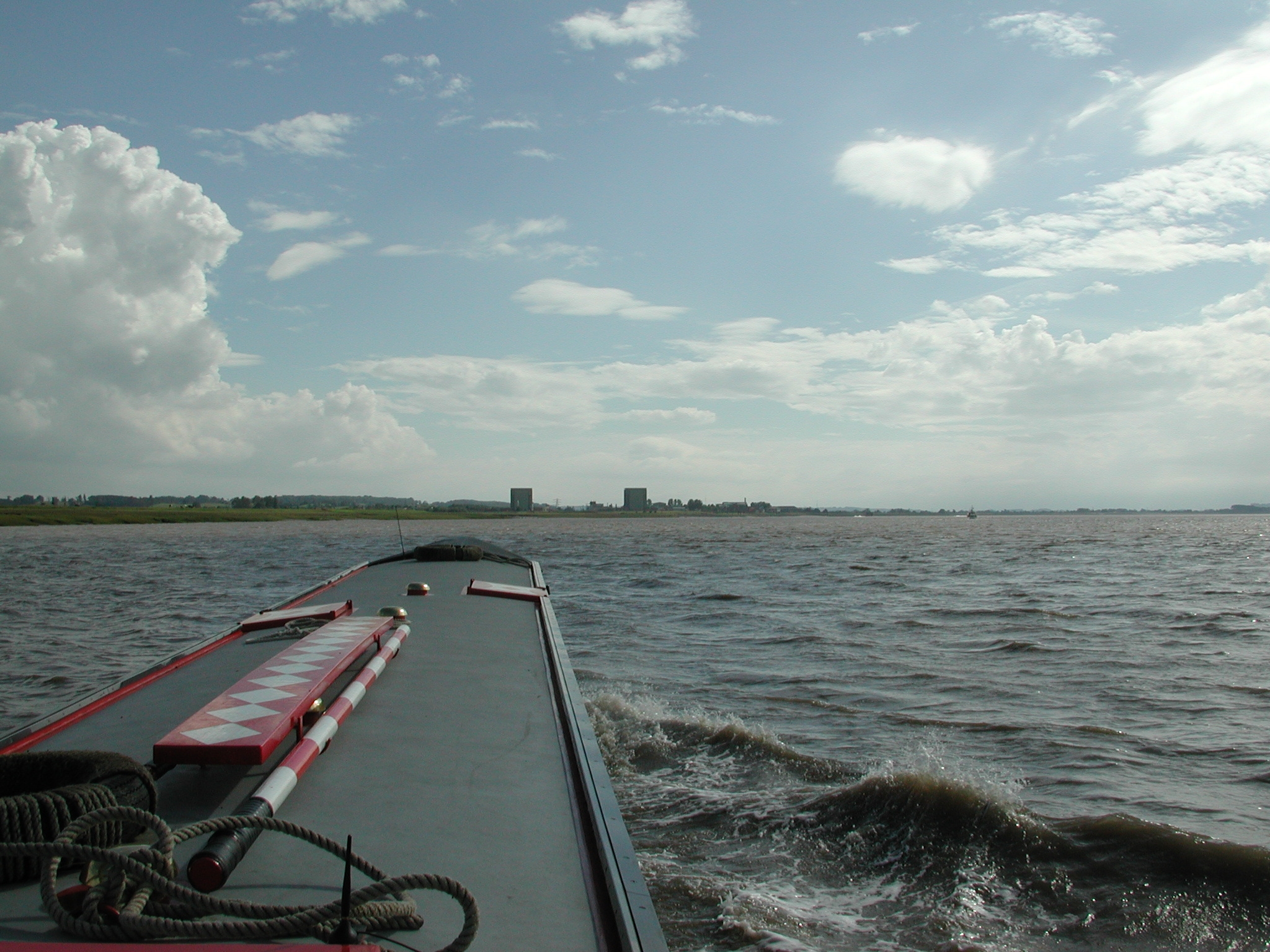 At 16:10 we exited the Entrance Lock. It was virtual neaps, so not too much excitement expected, other that there would be a bit of a swell below the bridges, due to a Force 3 blowing up the estuary. As it was neaps we punched the last hour of tide. It did indeed get a slight swell on below the bridges, but nothing to worry about.