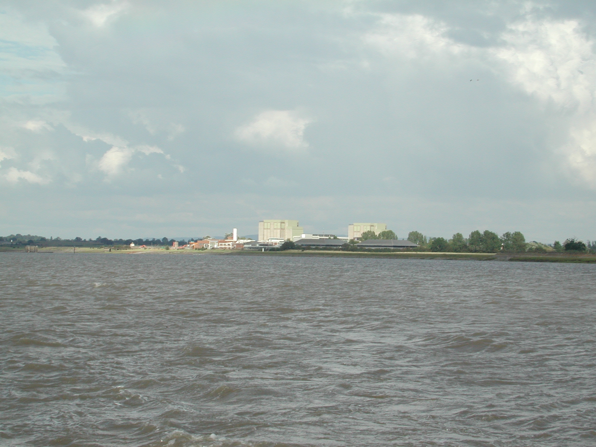 Looking back at Berkley Nuclear Power Station. Severn Estuary.