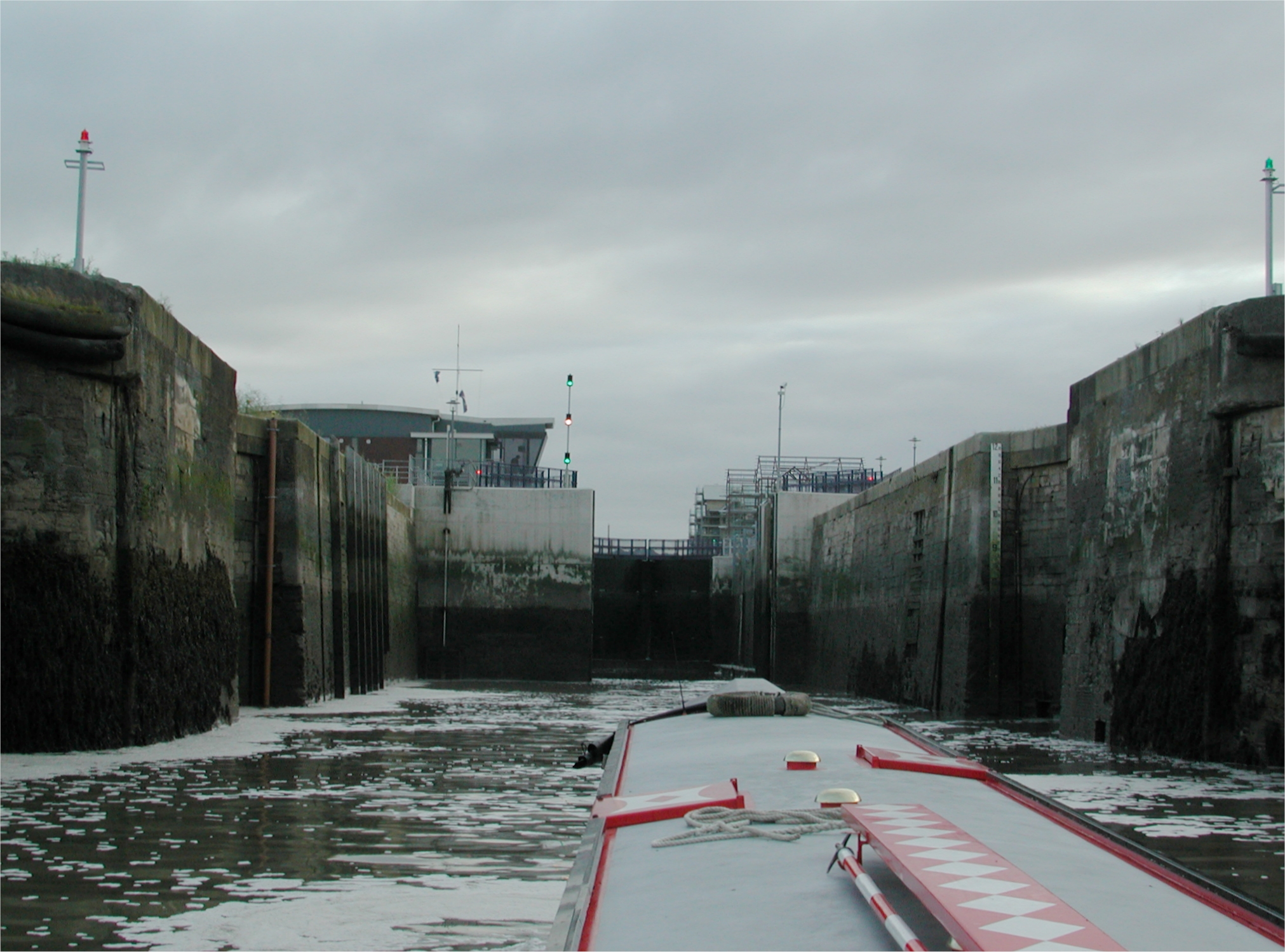 A new different experience at Portishead, the marina was now open in the old Docks and a new radial gate lock had been built in the remains of the old, just like at Limehouse. There was the added