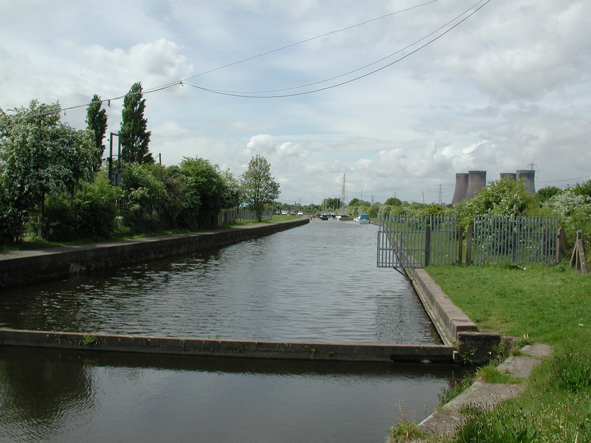 Fiddler's Ferry Lock. It would be possible to beach a narrowboat / stay afloat