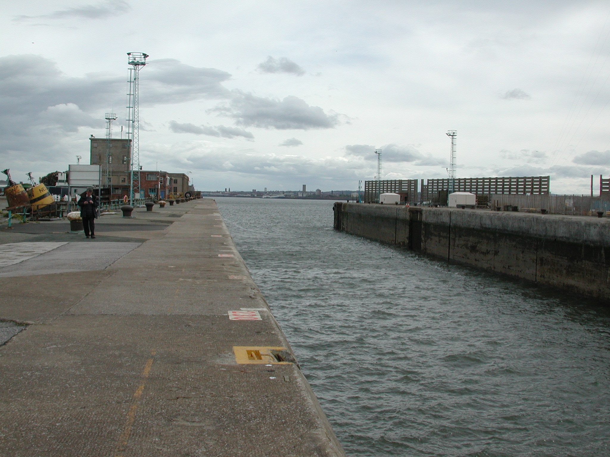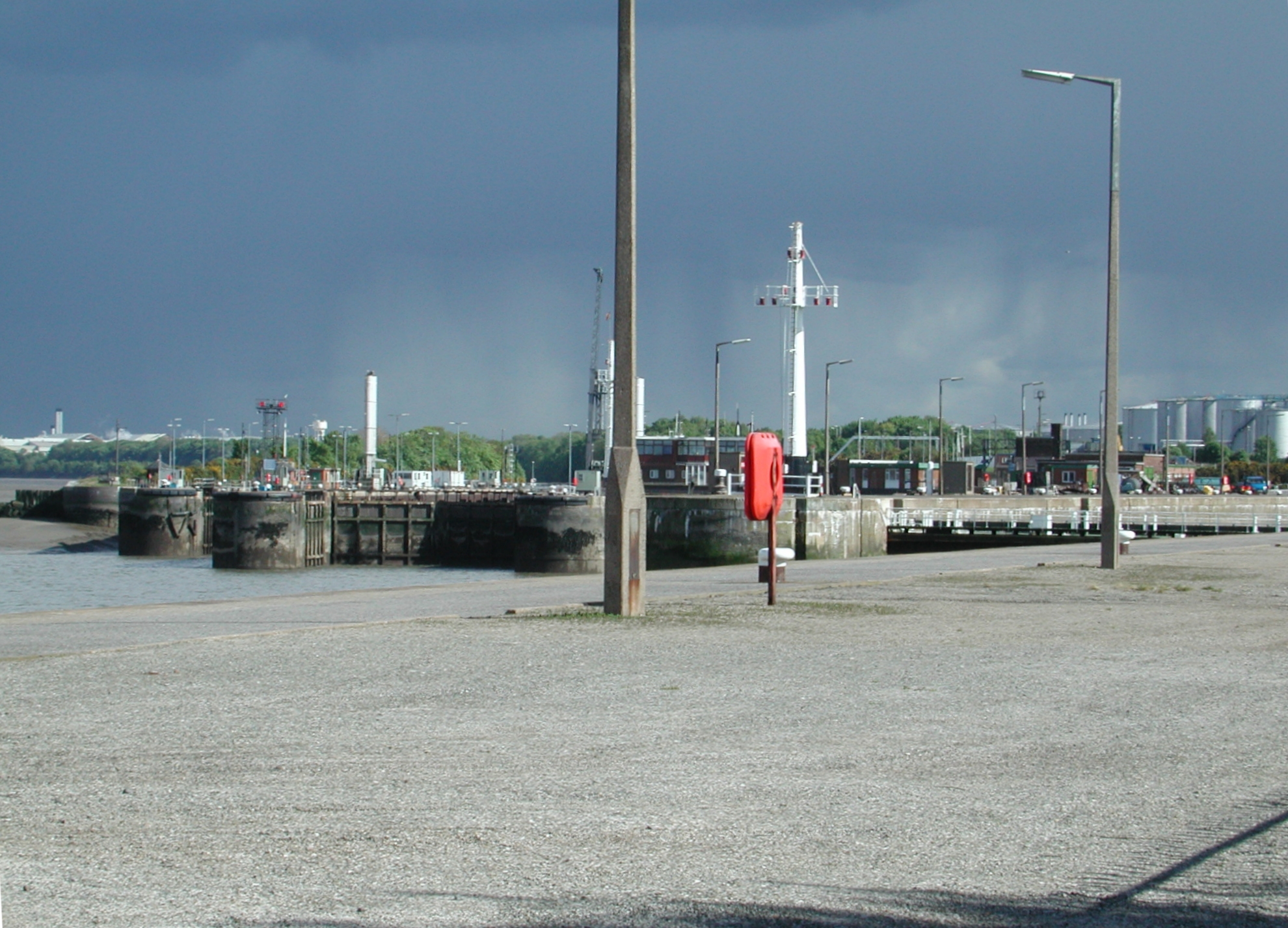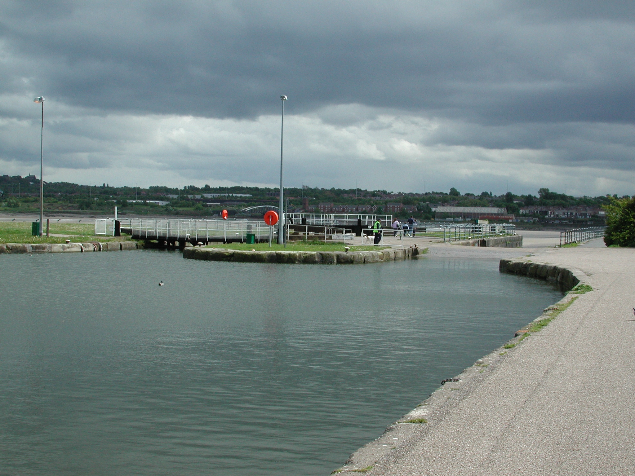 Eastham, Mersey Estuary. Looking up at the entrance to the Manchester Ship