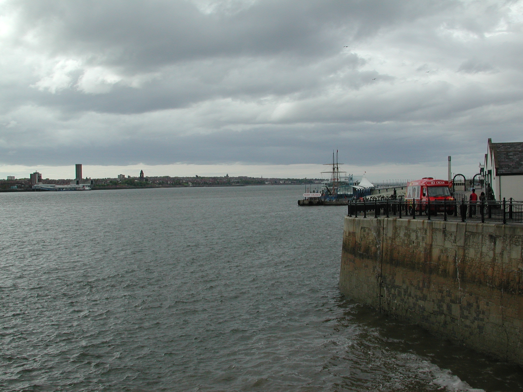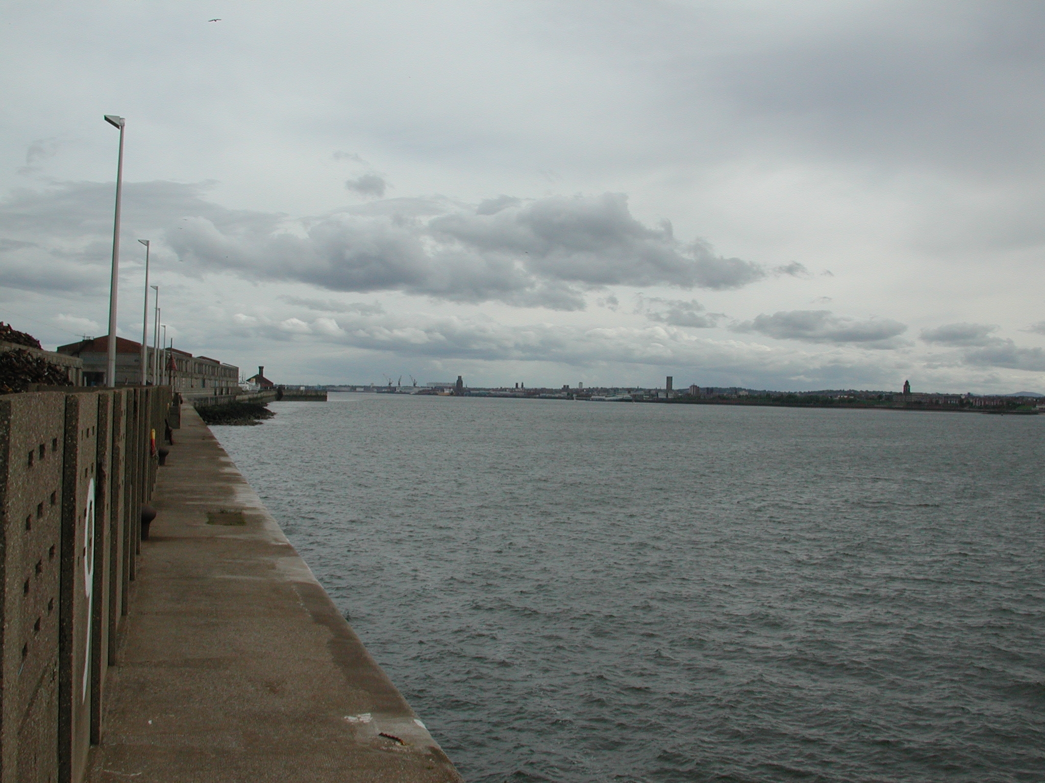 Looking across at New Holland, mouth of the Mersey Estuary from Liverpool Docks.