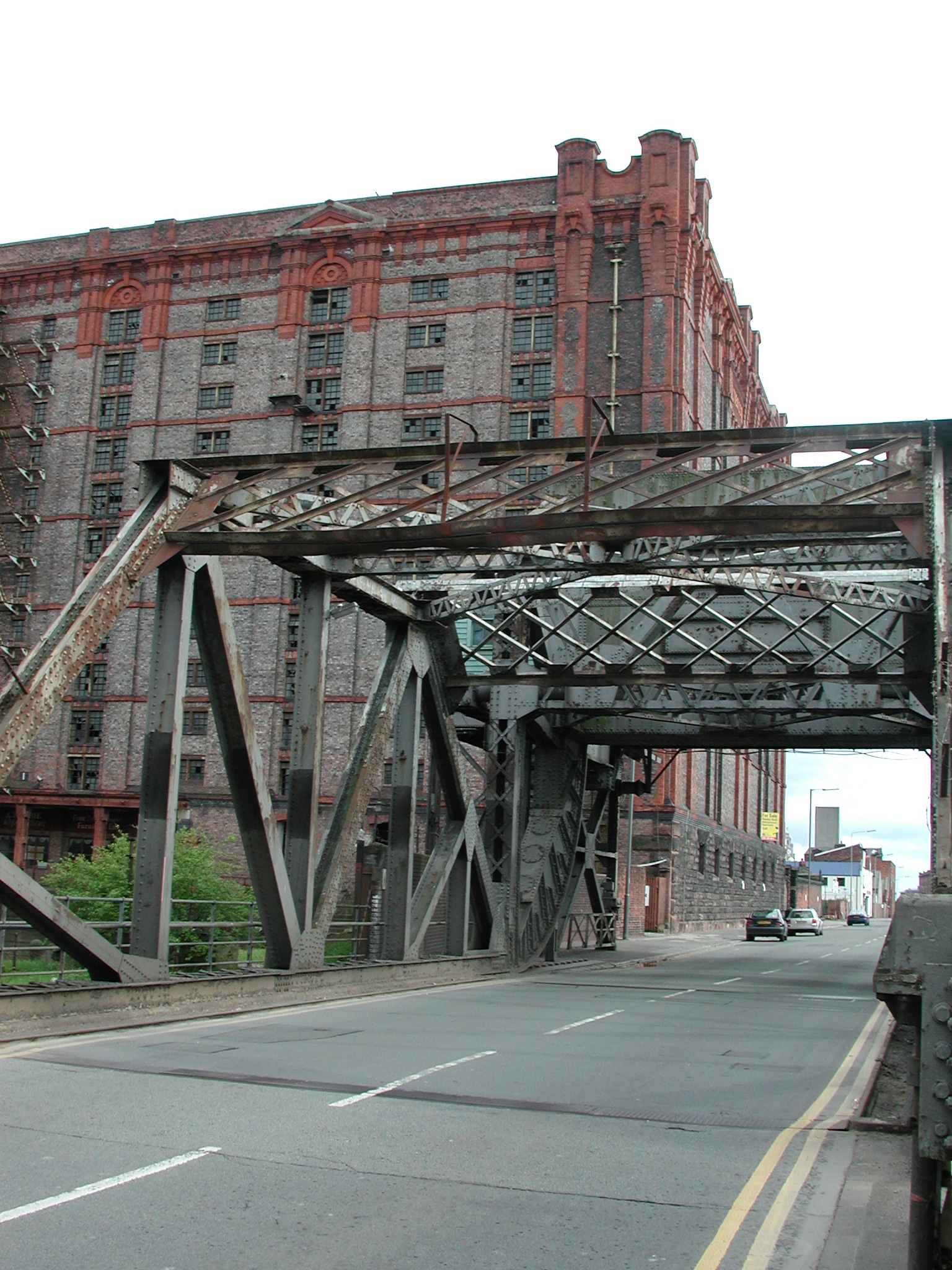 The listed Tobacco Warehouse beside Stanley Dock. The Bascule Bridge at the
