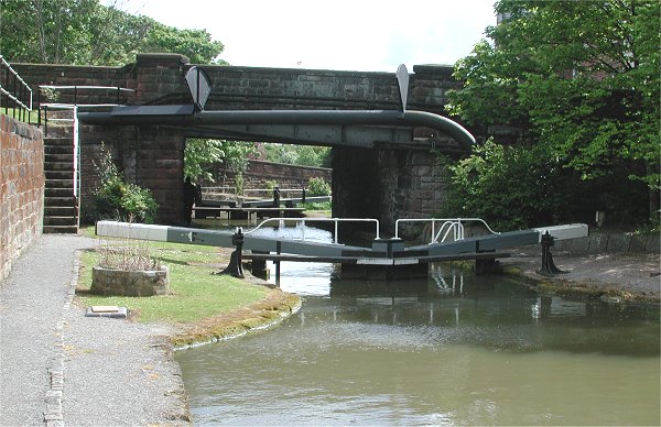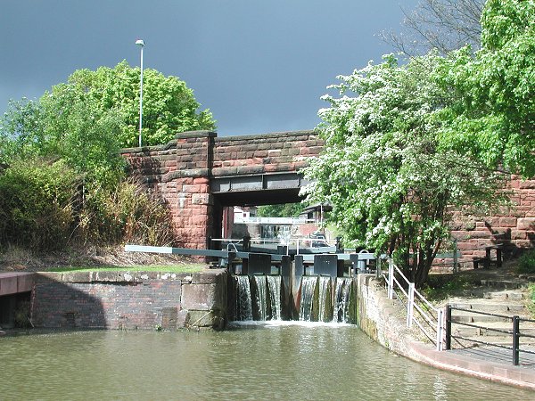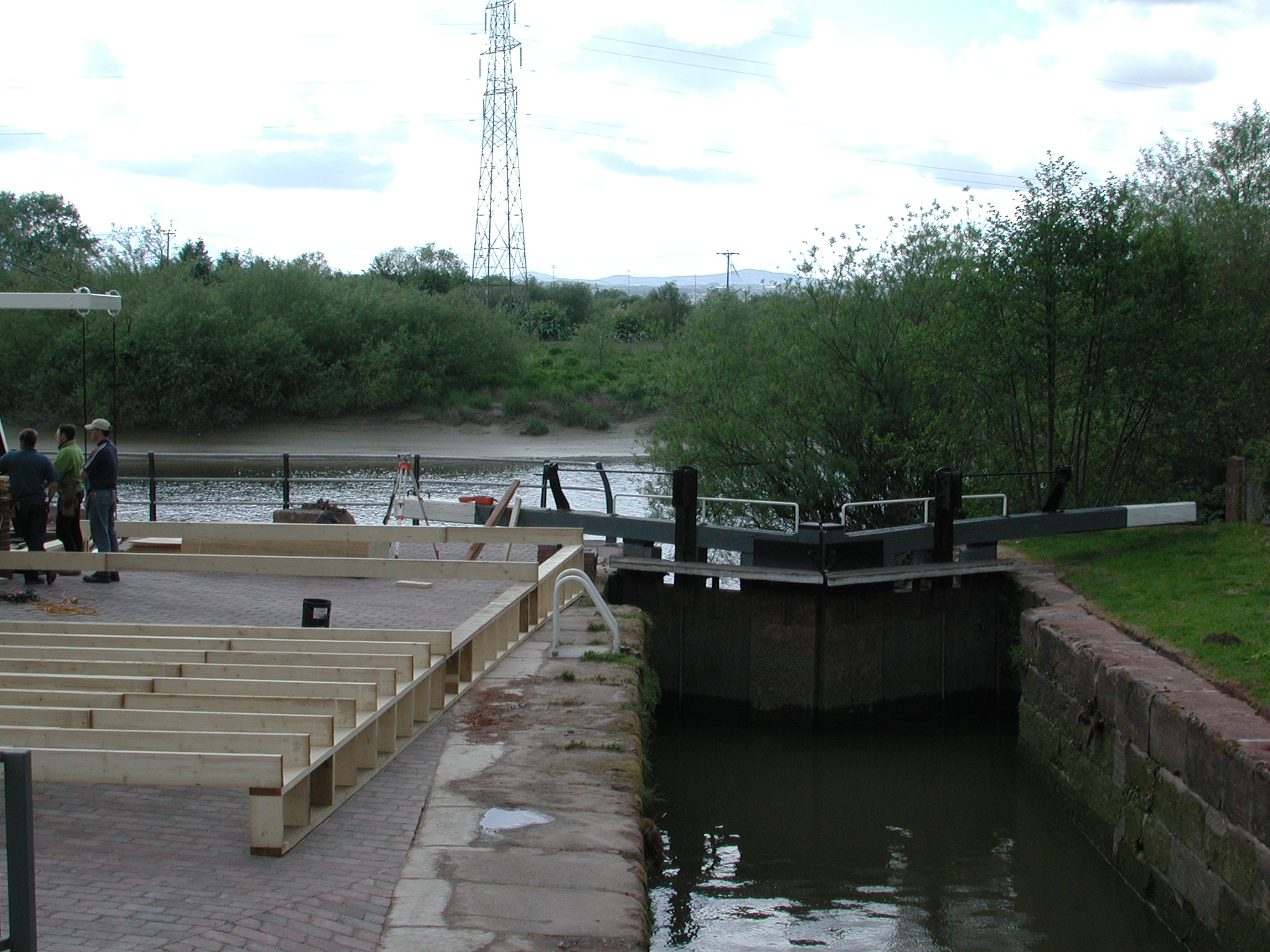 Fiddler's Ferry Lock from Sankey Canal to tidal River Mersey. Fiddler's Ferry