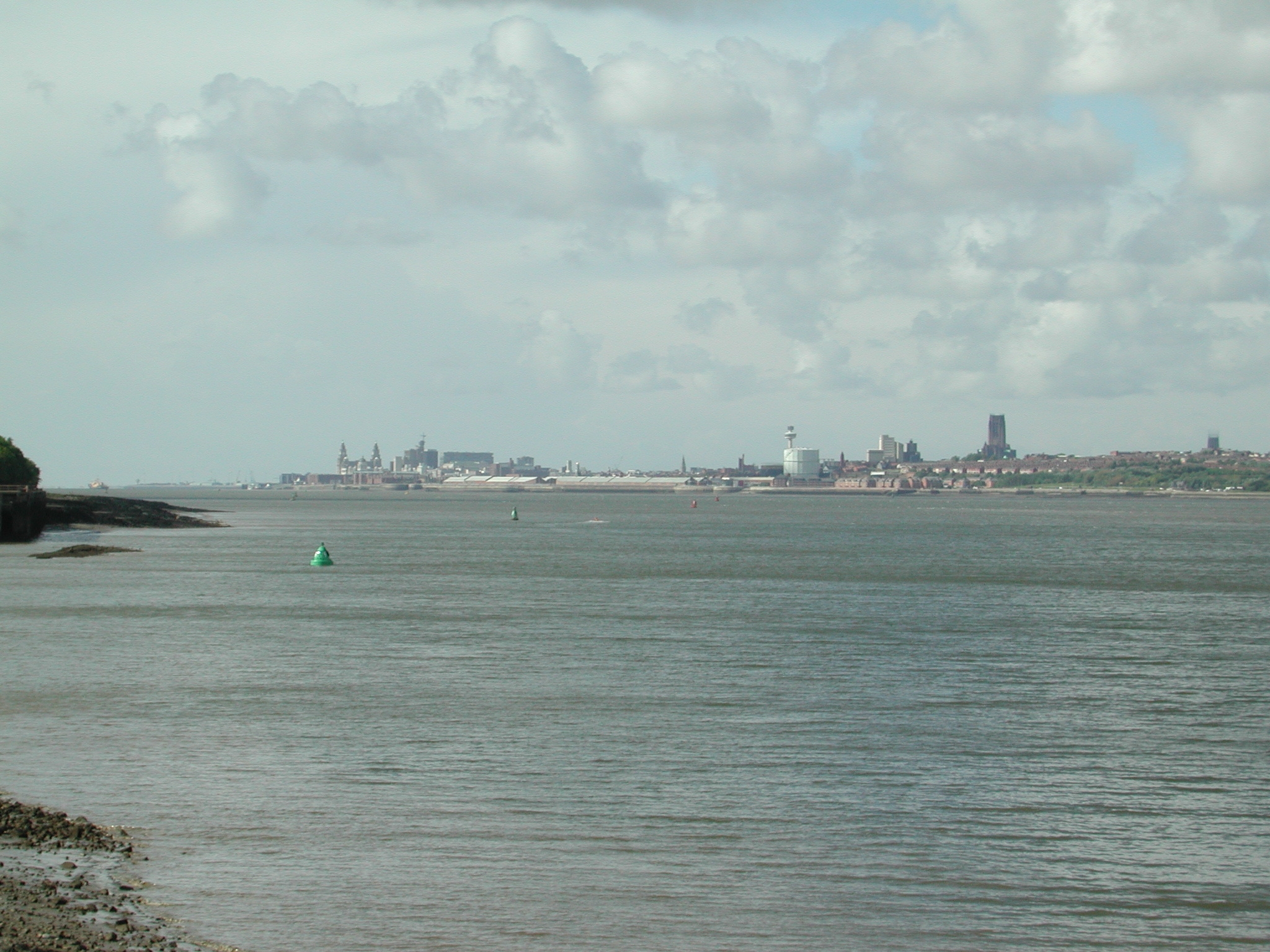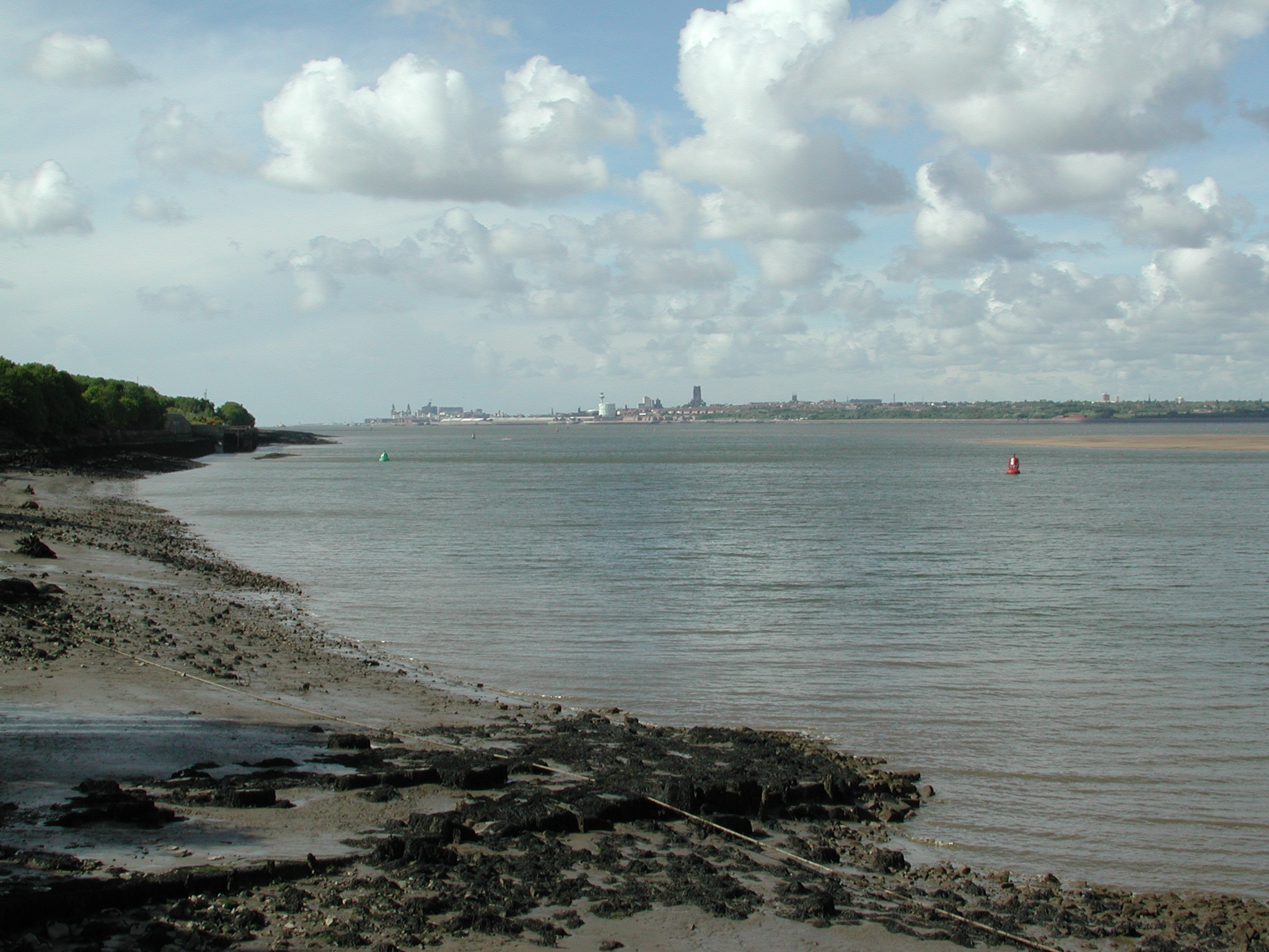 Eastham, Mersey Estuary. Looking down to Liverpool.