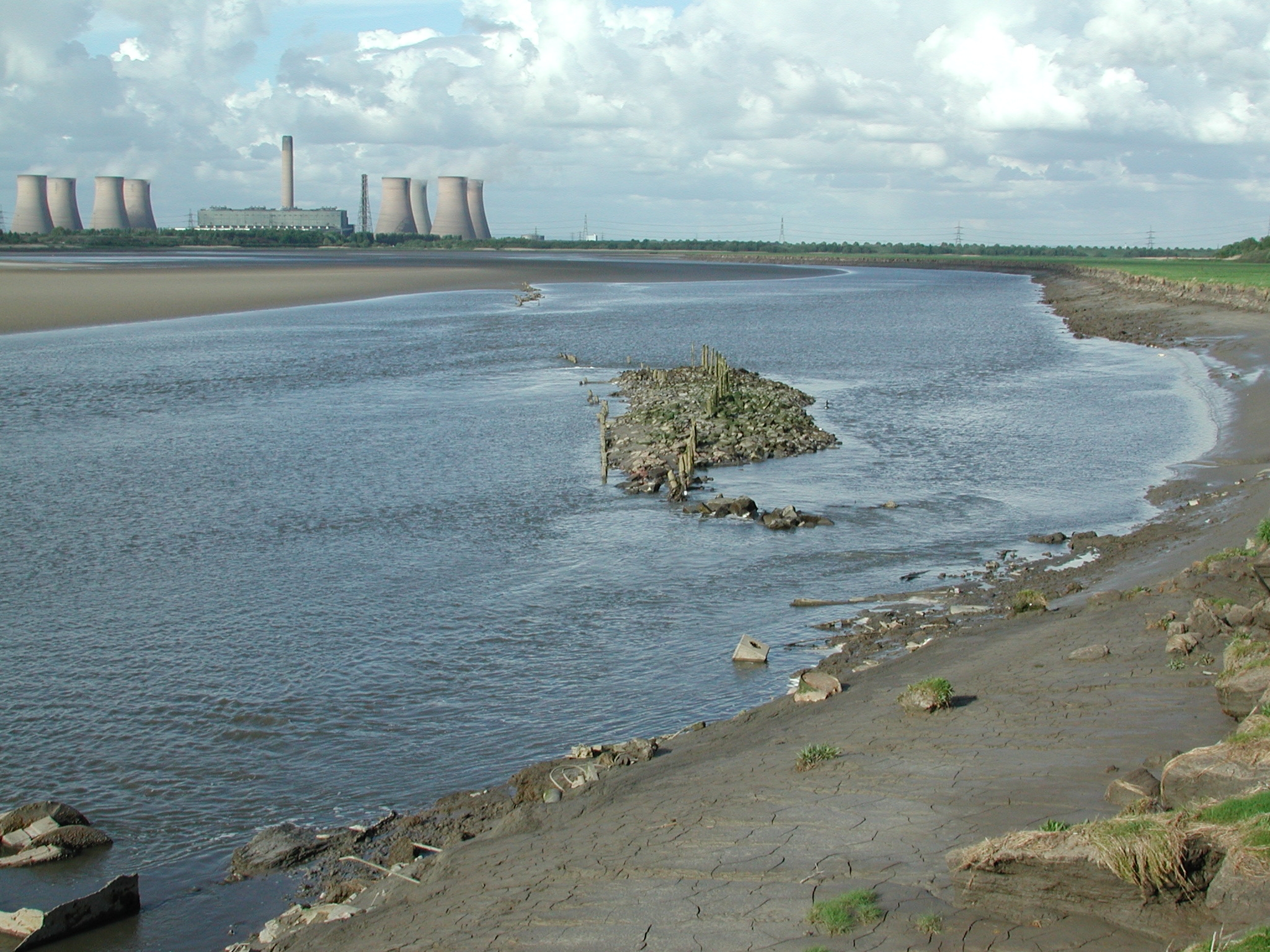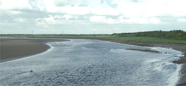 Runcorn, Old Quay, looking up the Mersey Estuary. The channel of the Tidal River