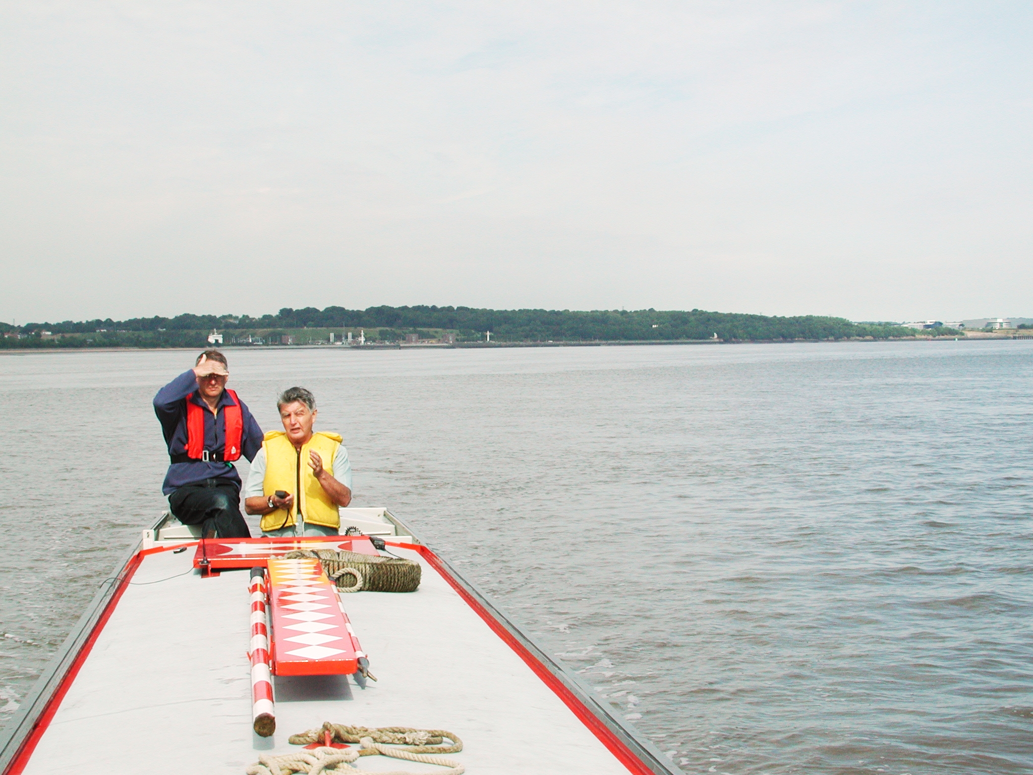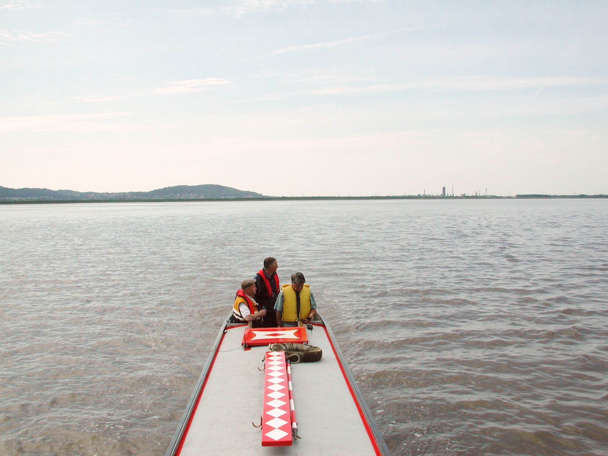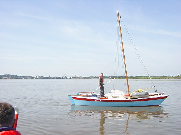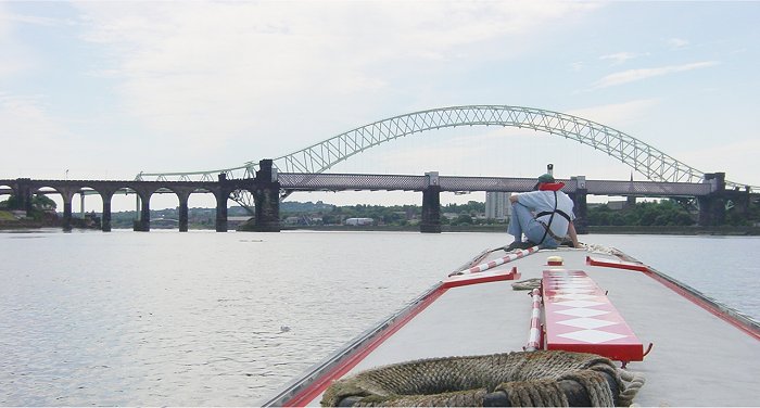 Runcorn Bridges. Neil now on depth sounding with barge pole. Mersey Estuary.