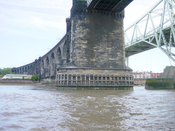 that had only recently sliced the keel of a visiting yacht.) and go across the flood to go through the central arch of the railway bridge.