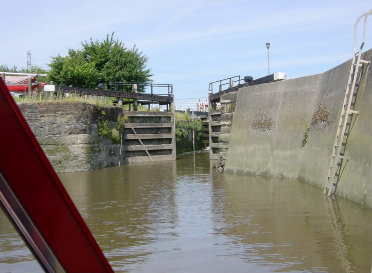 Creeping up to to Fiddler's Ferry Lock. Tidal River Mersey.