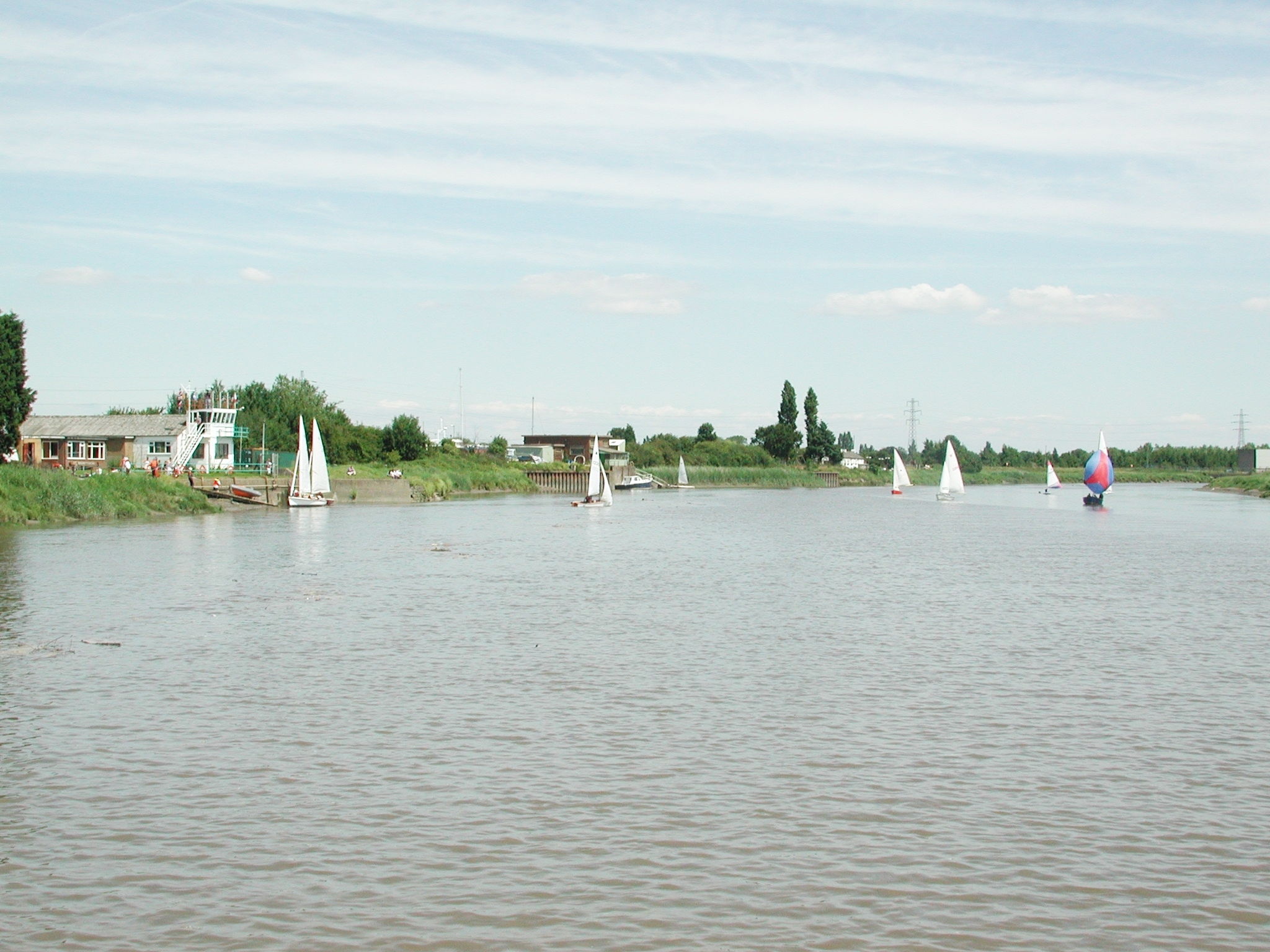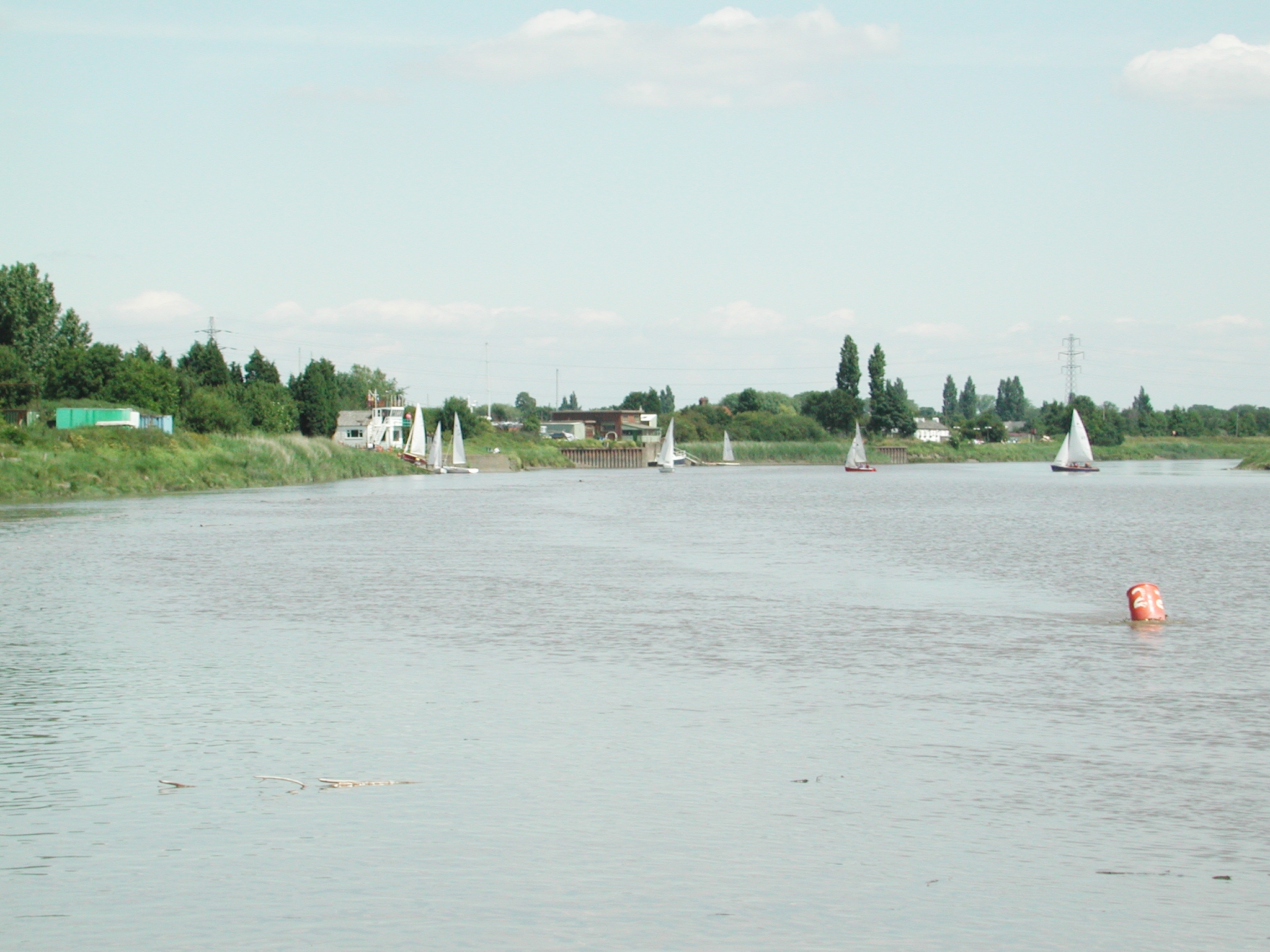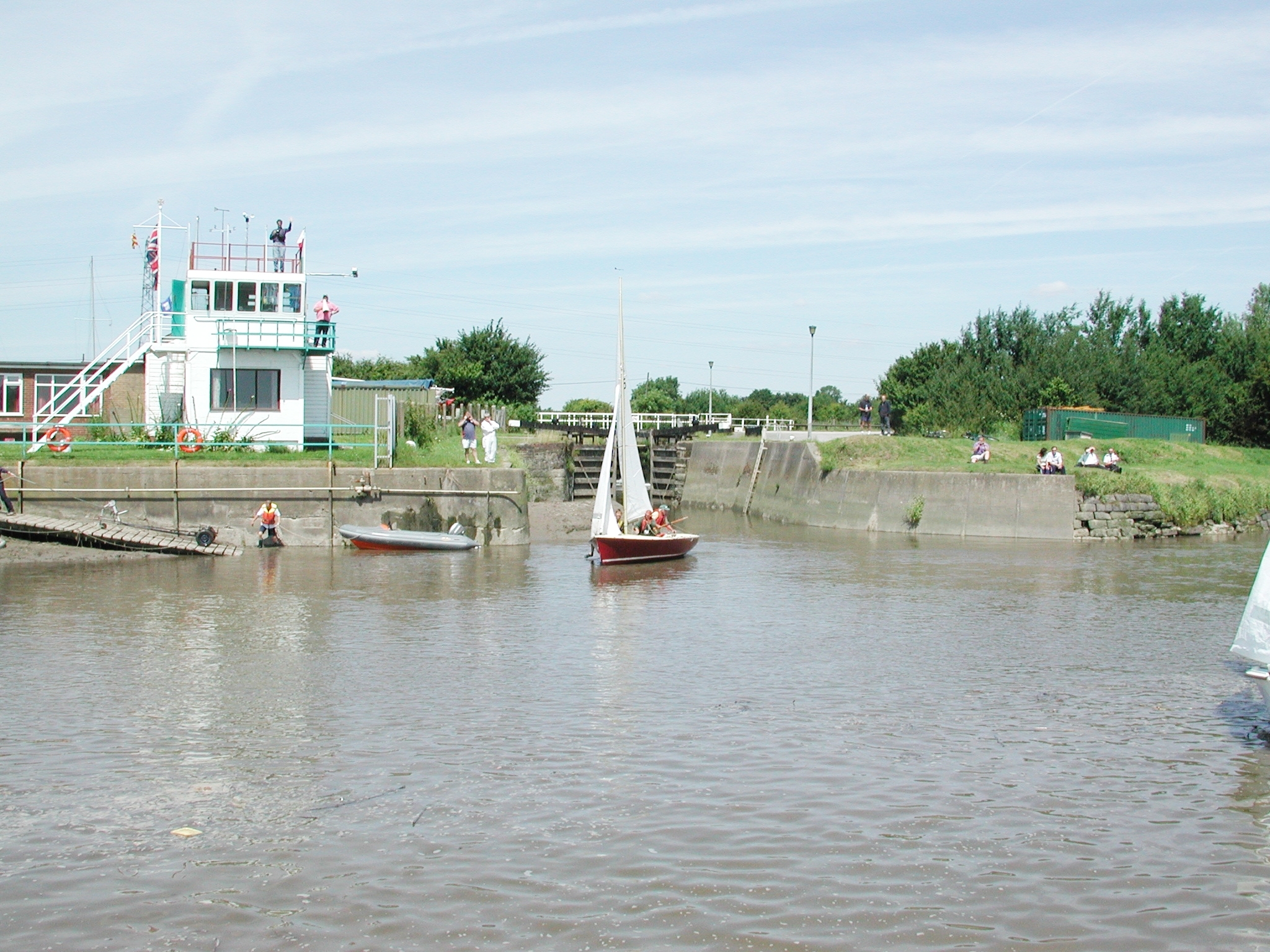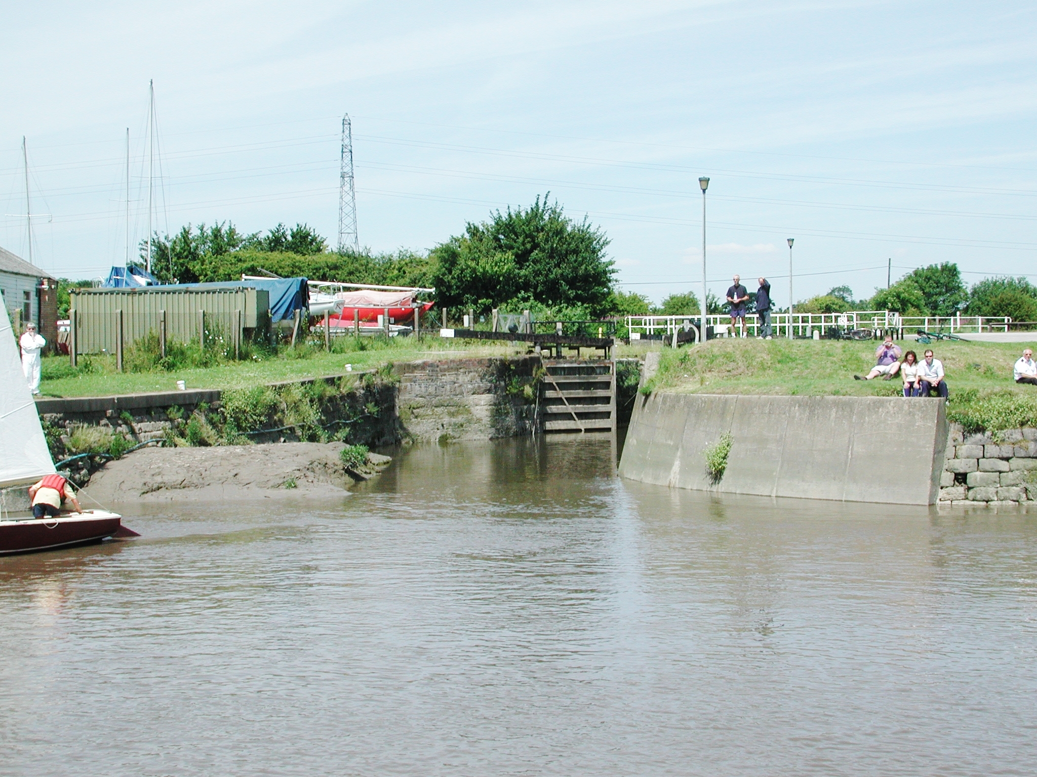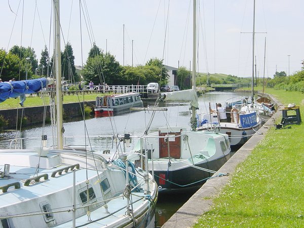 Fiddler's Ferry. The lock is just beyond the first two sail boats. Tidal