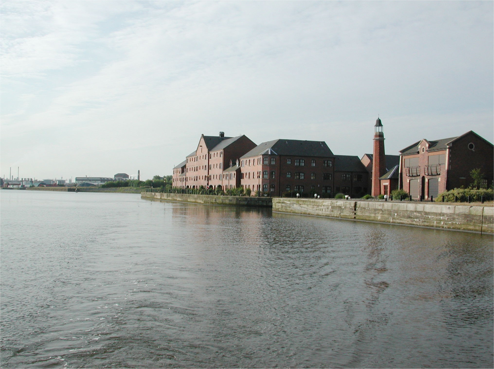 section of channel. The entrance to Old Quay Lock can be seen on the left. Tidal