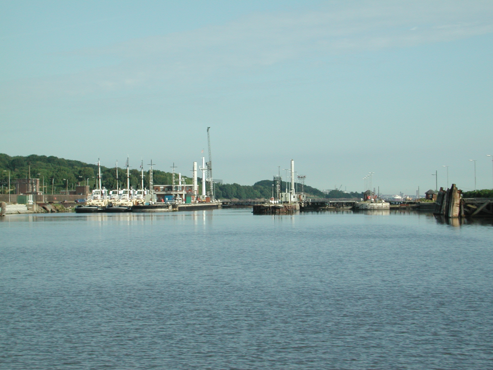 Eastham Locks. Departure into the Mersey. Manchester Ship Canal.