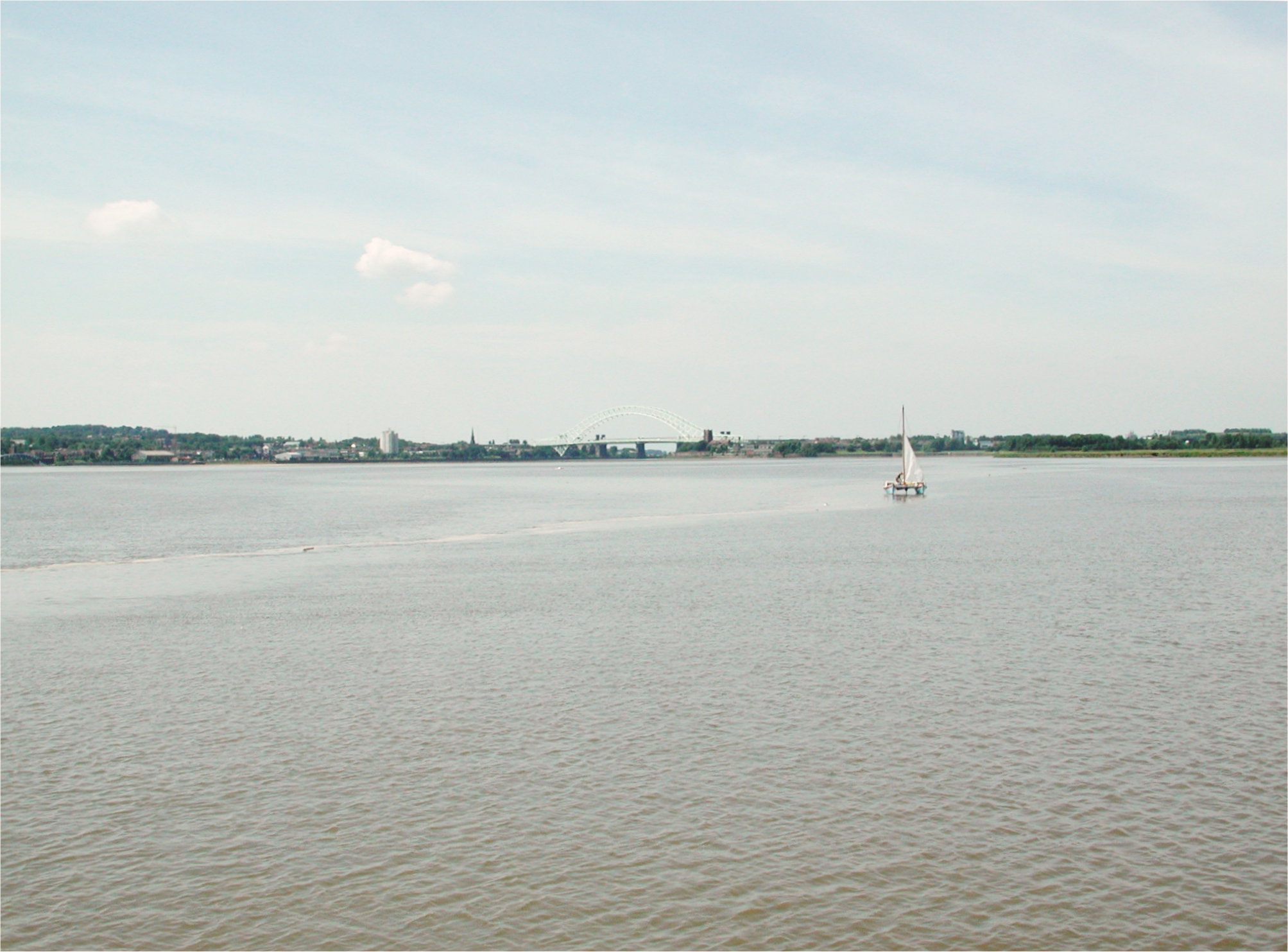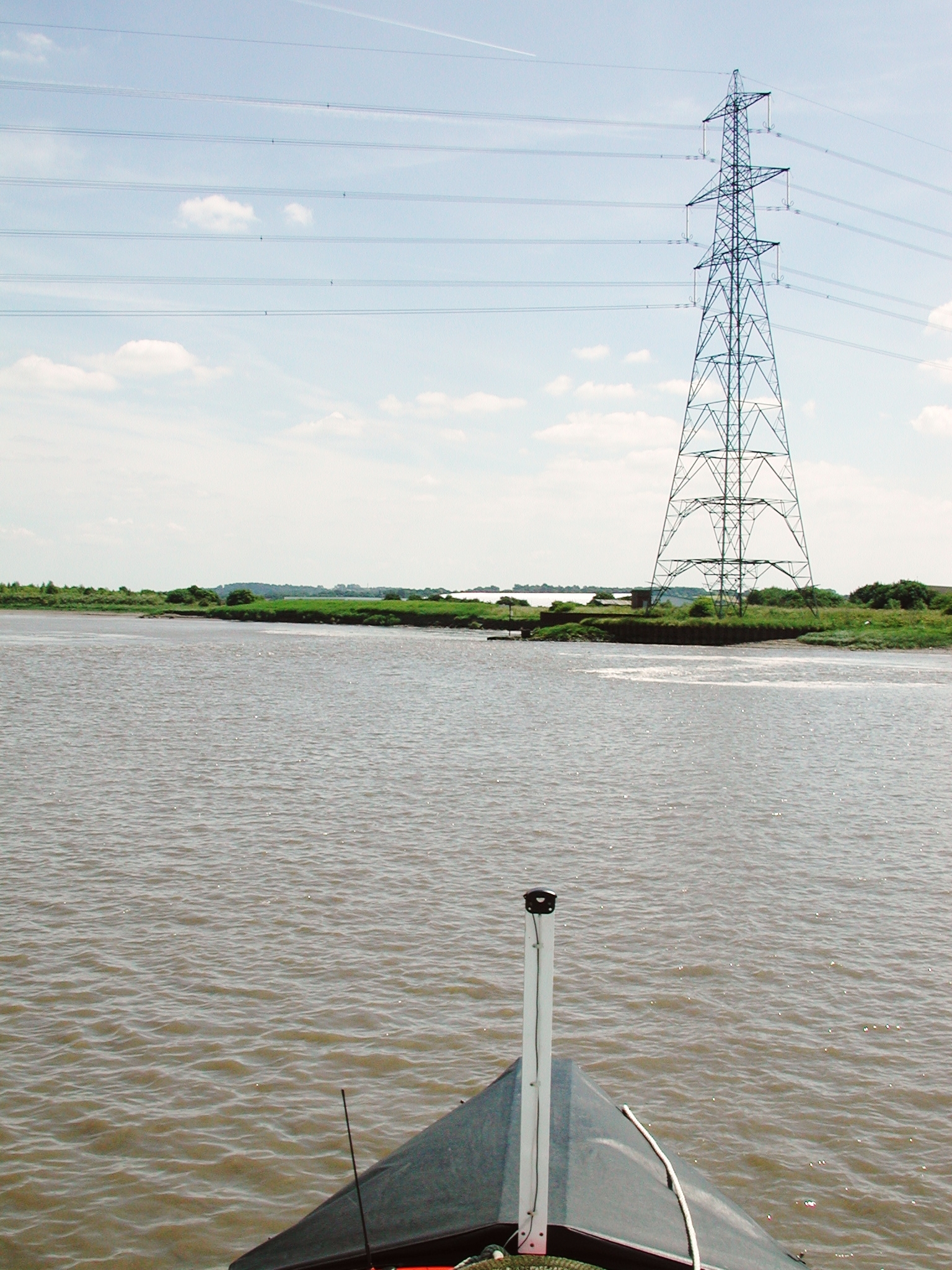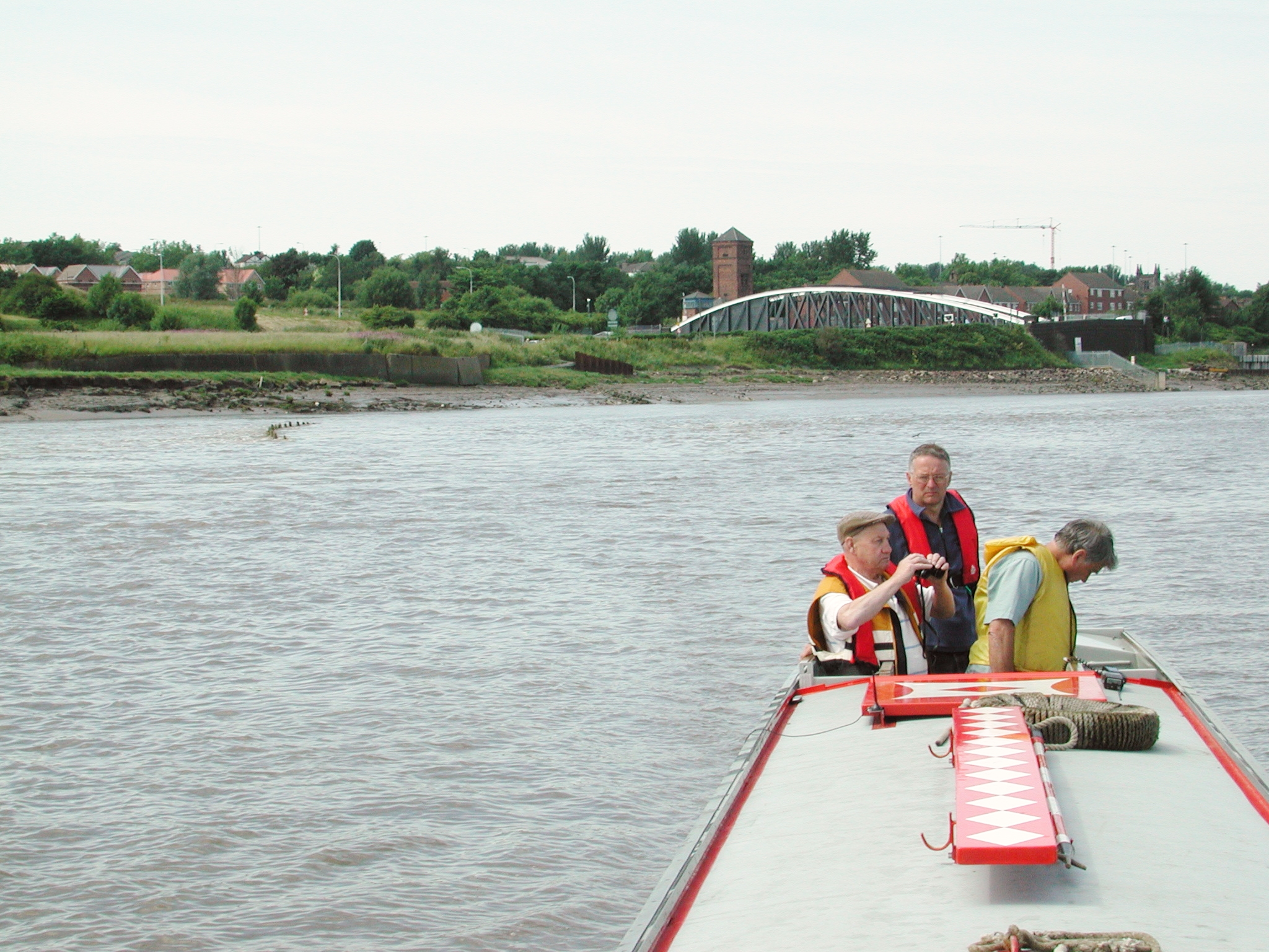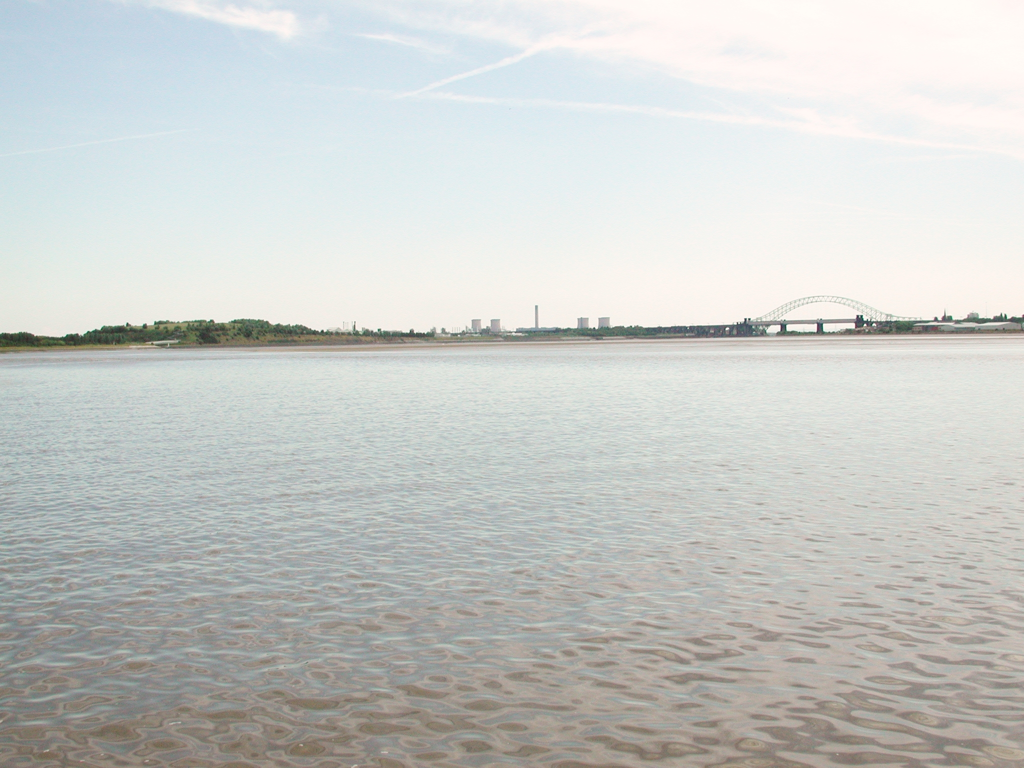 We are tight to the northern bank. Runcorn Bridges in the distance. Mersey Estuary.