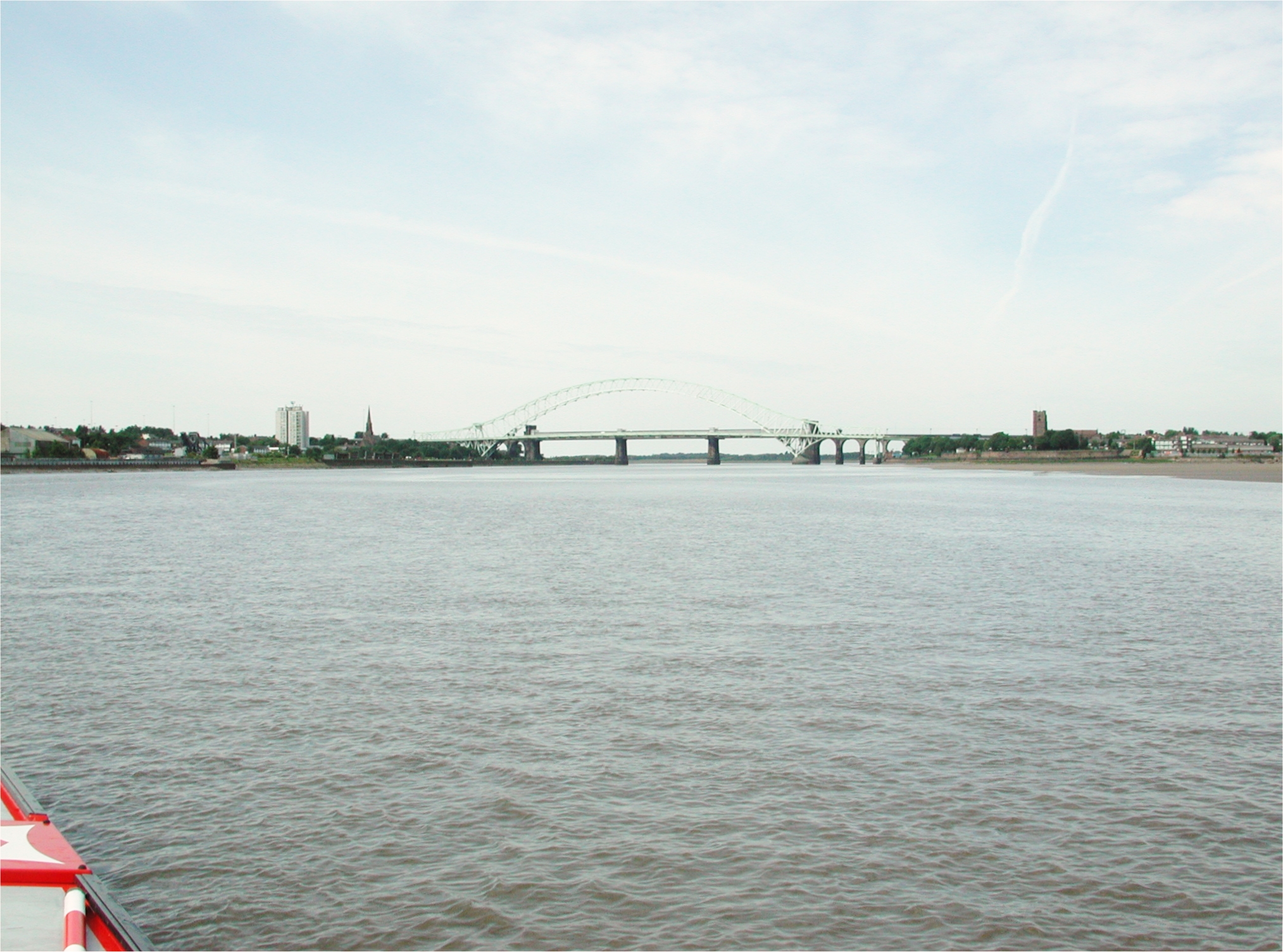 Runcorn Bridges come into view. Mersey Estuary.