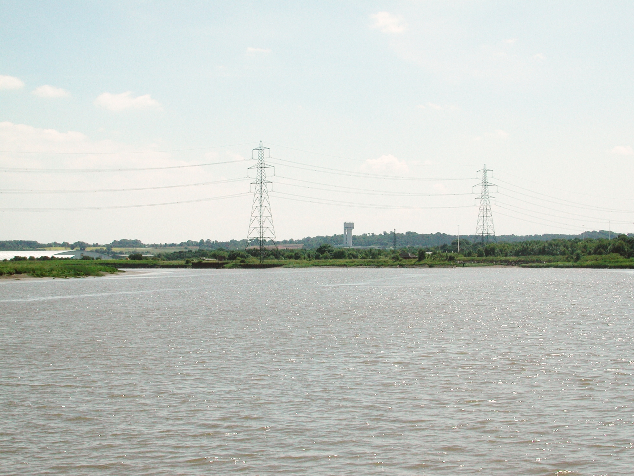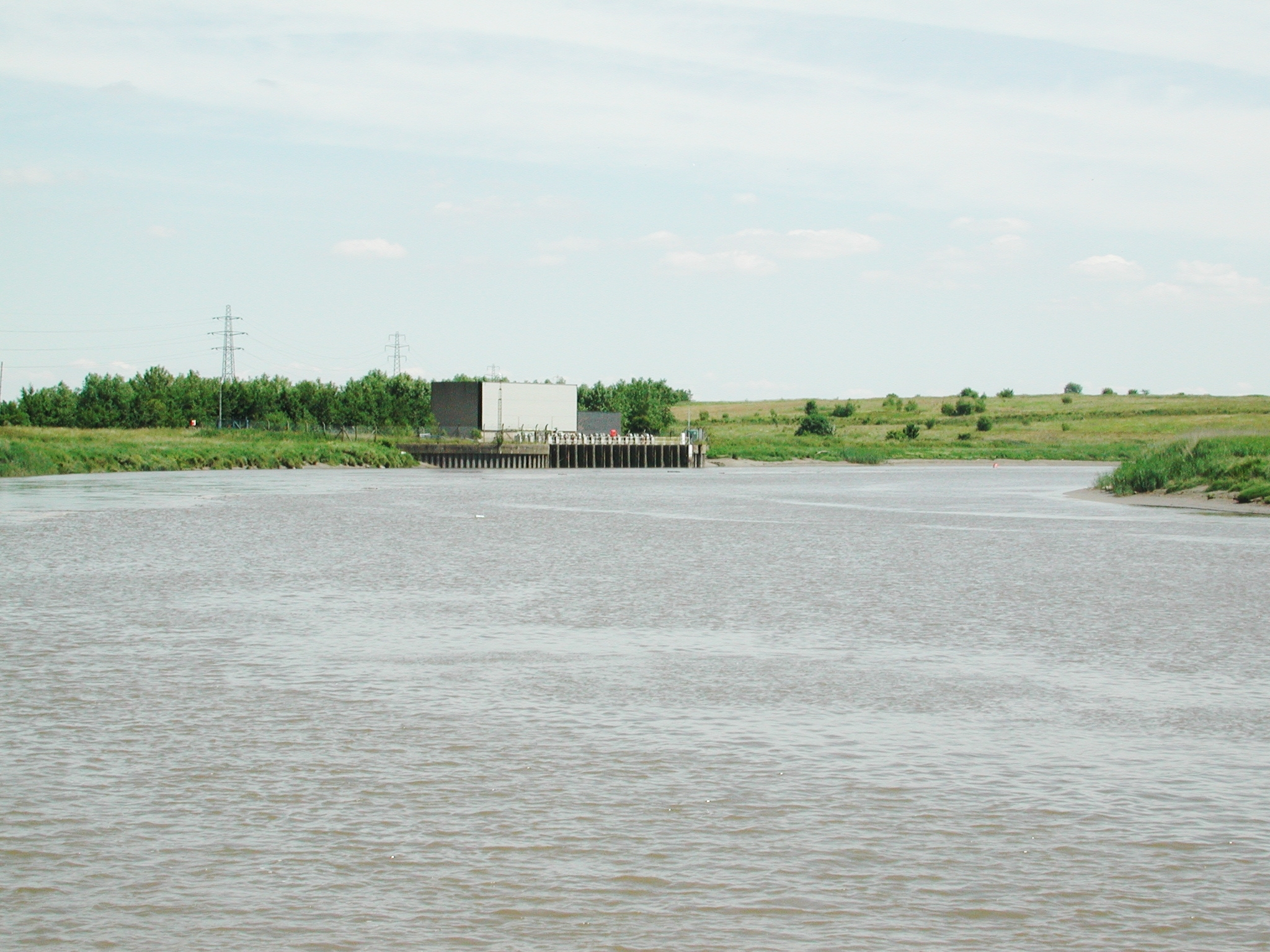 Disused Randalls Sluices of the MSC, just beyond the pylon. Tidal River Mersey.