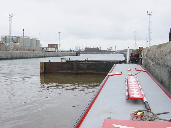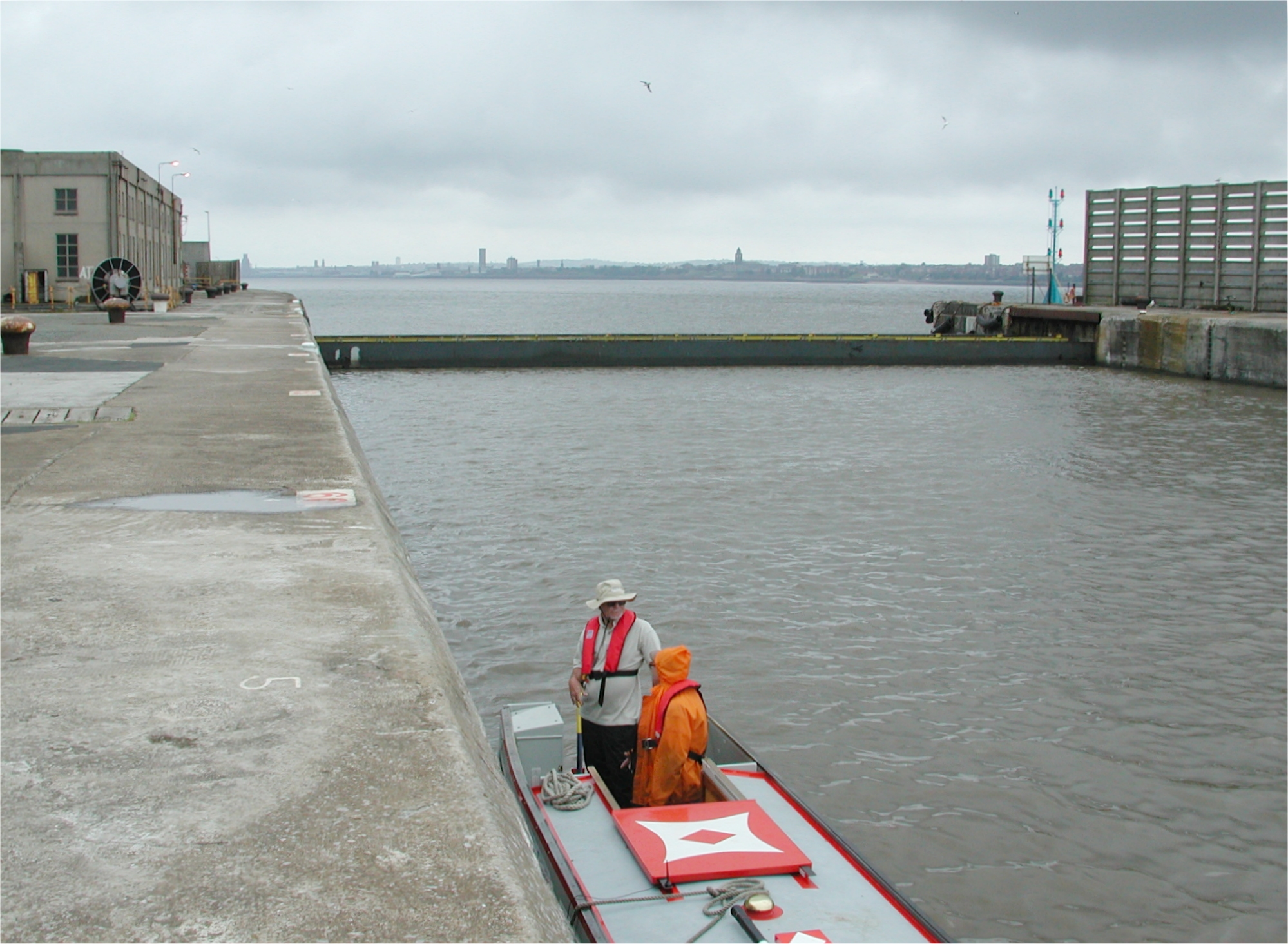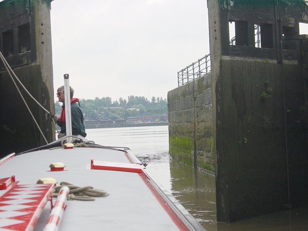 About to leave Spike Island Lock and go of into the Tidal Mersey, notice the