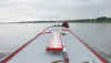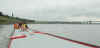 Creeping through the Runcorn Bridges. Mersey River Rescue keep watch. Tidal