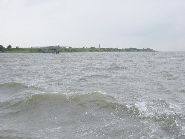 The slamming continued to around the Pier head, then subsided. This was due to the NW (wind over Spring tide) Force 4 now not having much flood to argue