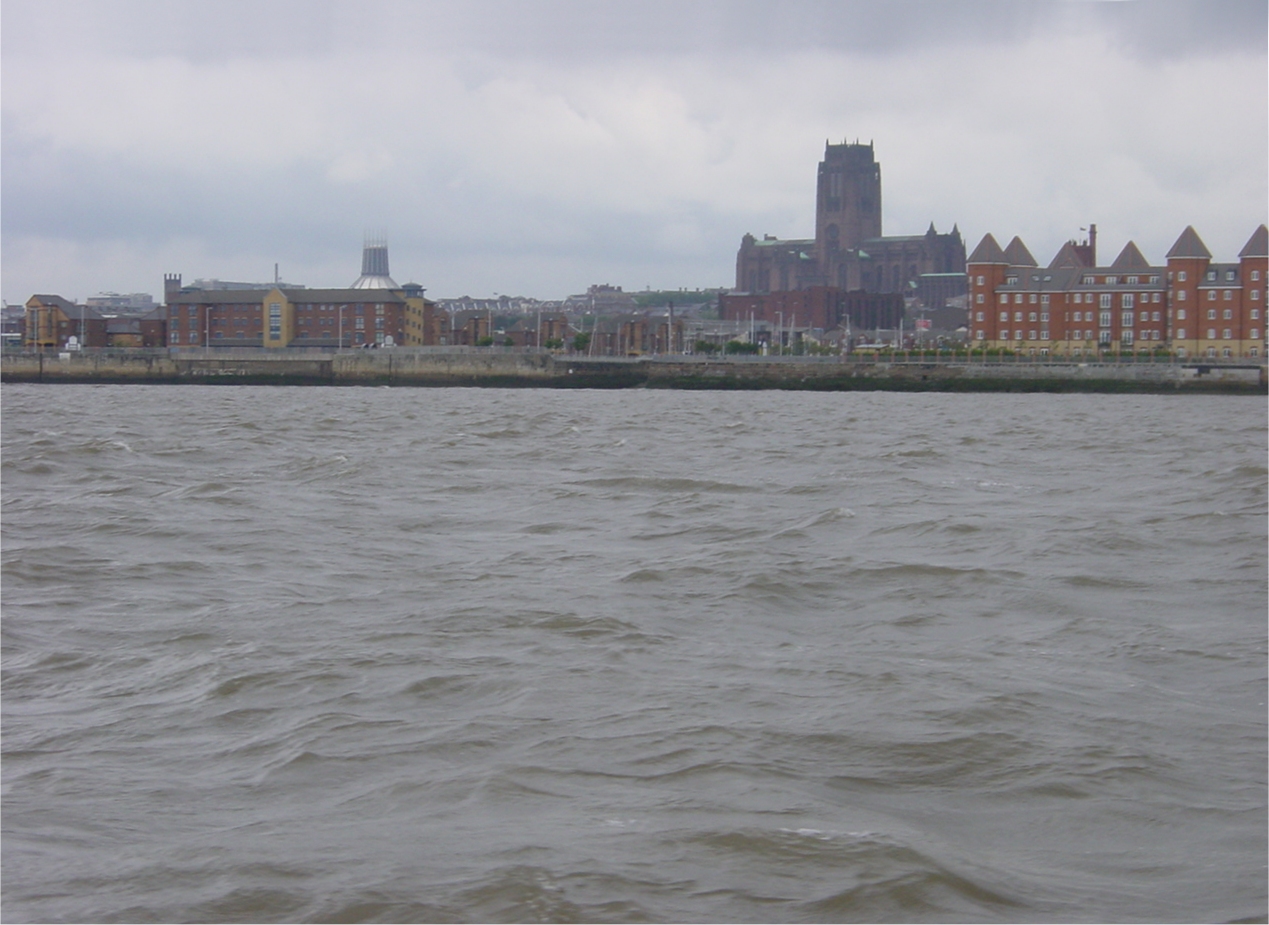 Looking back at Toxteth and Liverpool Marina. Mersey Estuary.