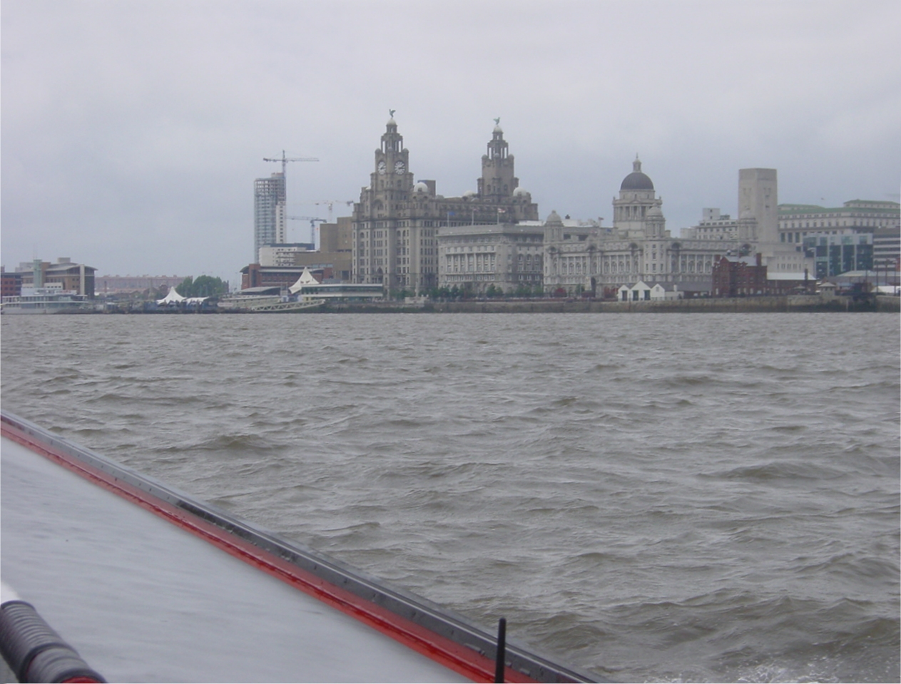 John mentioned that we were now bombing along at around 14.5MPH. The Liverpool water front certainly shot past. Only one Mersey Ferry was out,