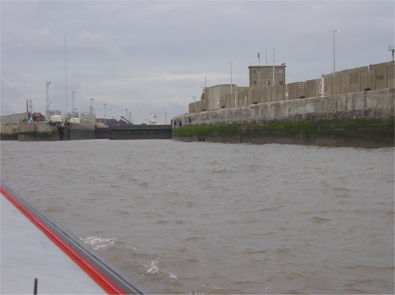Entering Langton Lock, Liverpool Docks. Mersey Estuary.