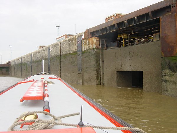 Langton Lock, Liverpool Docks. The bottom gate slides away to welcome us. Mersey