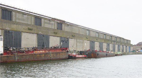 magnificent Tobacco warehouse towers over the scene. Our berth is just left