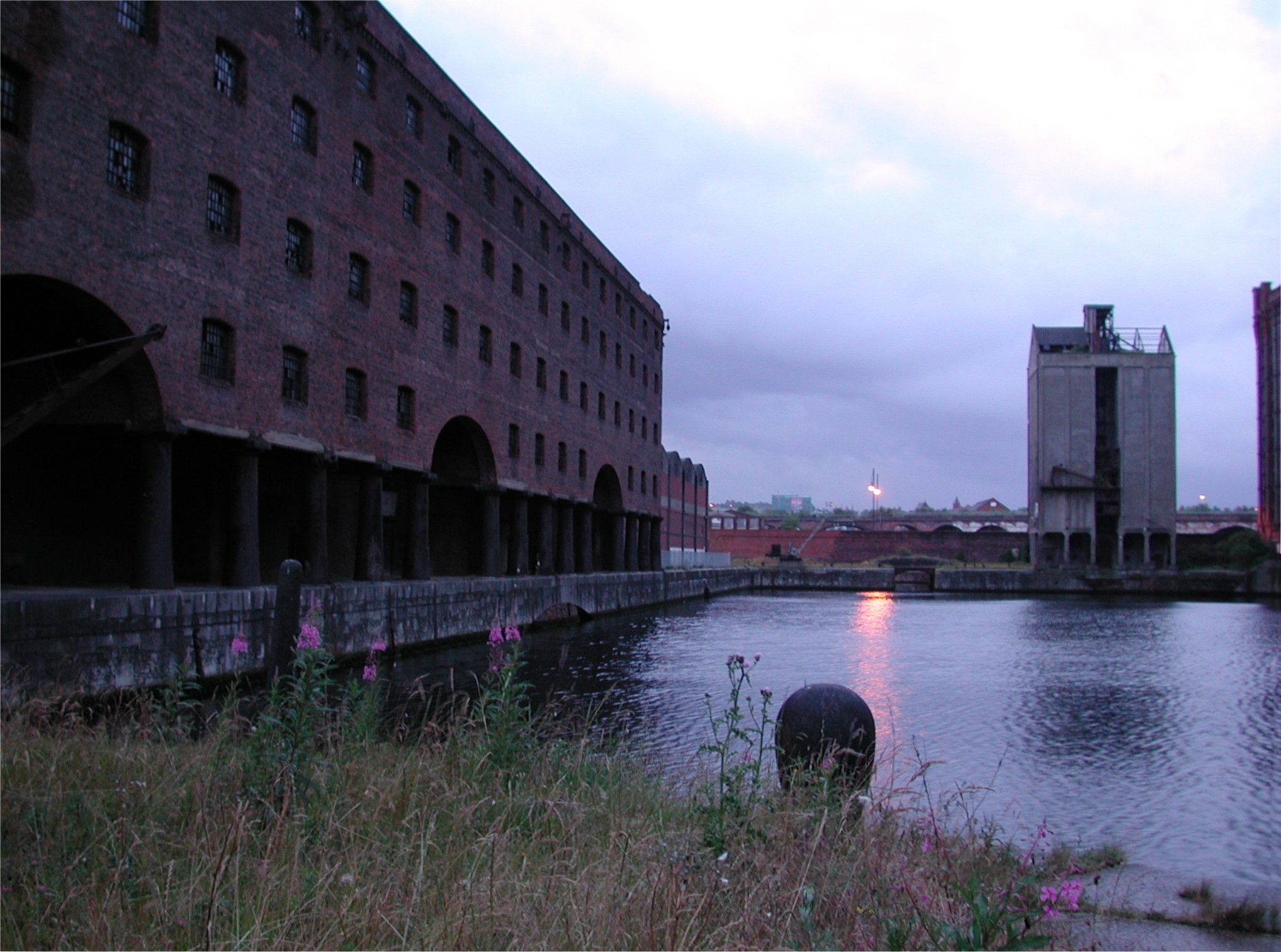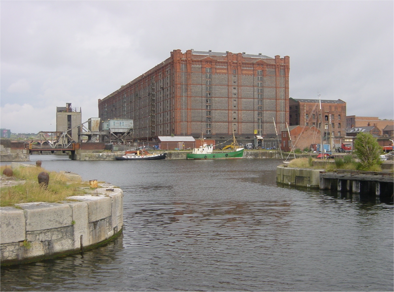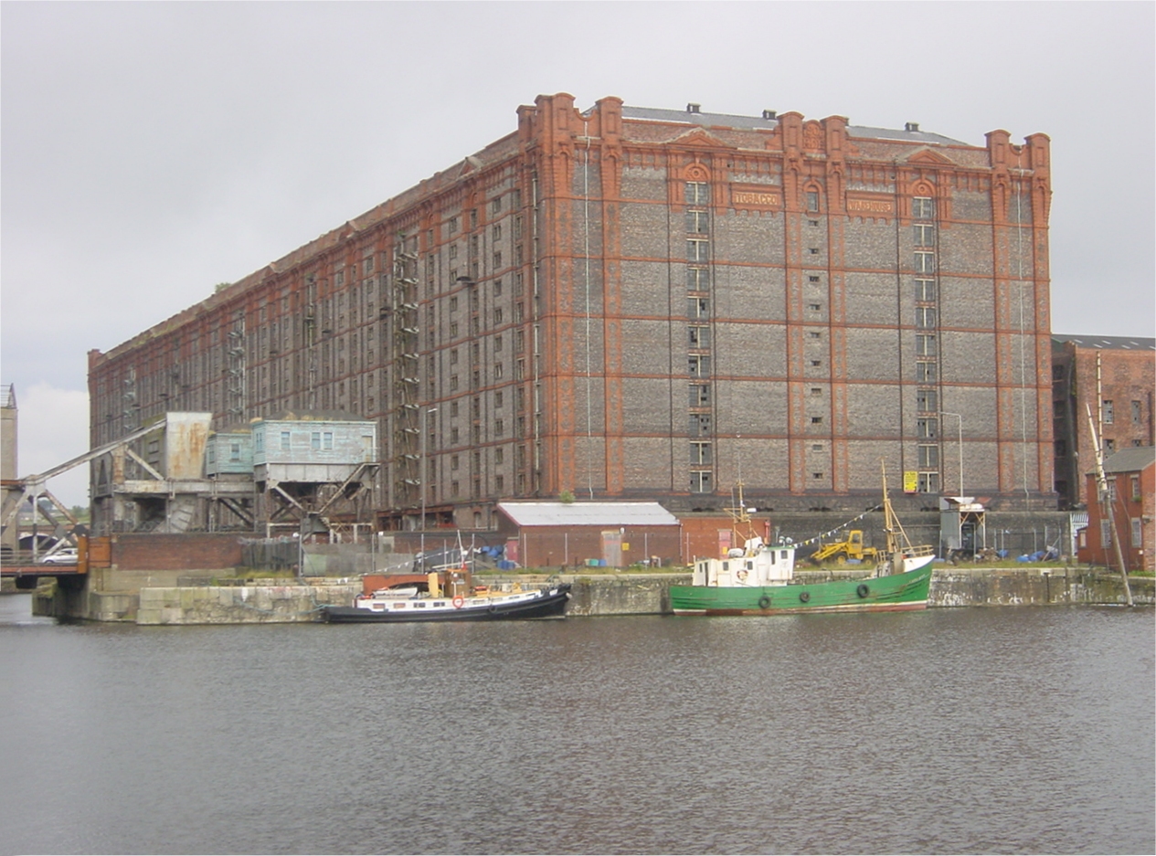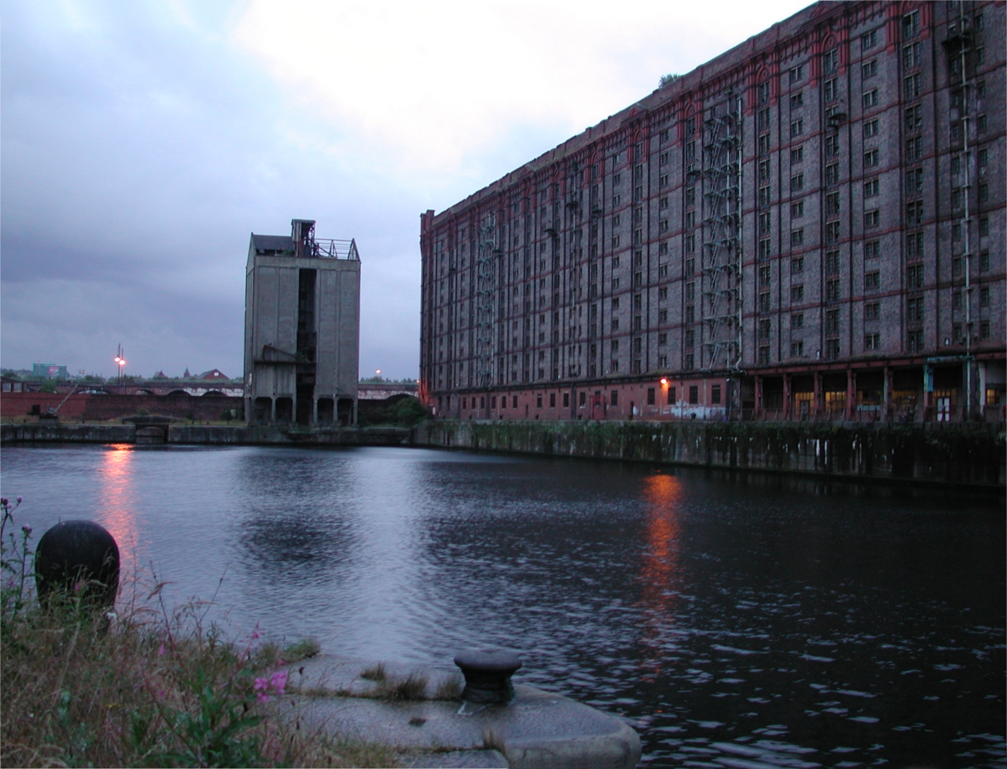 The Tobacco Warehouse dominates the scene. Liverpool Docks.